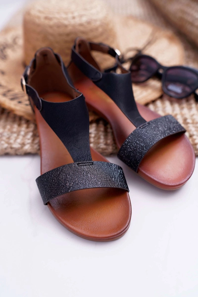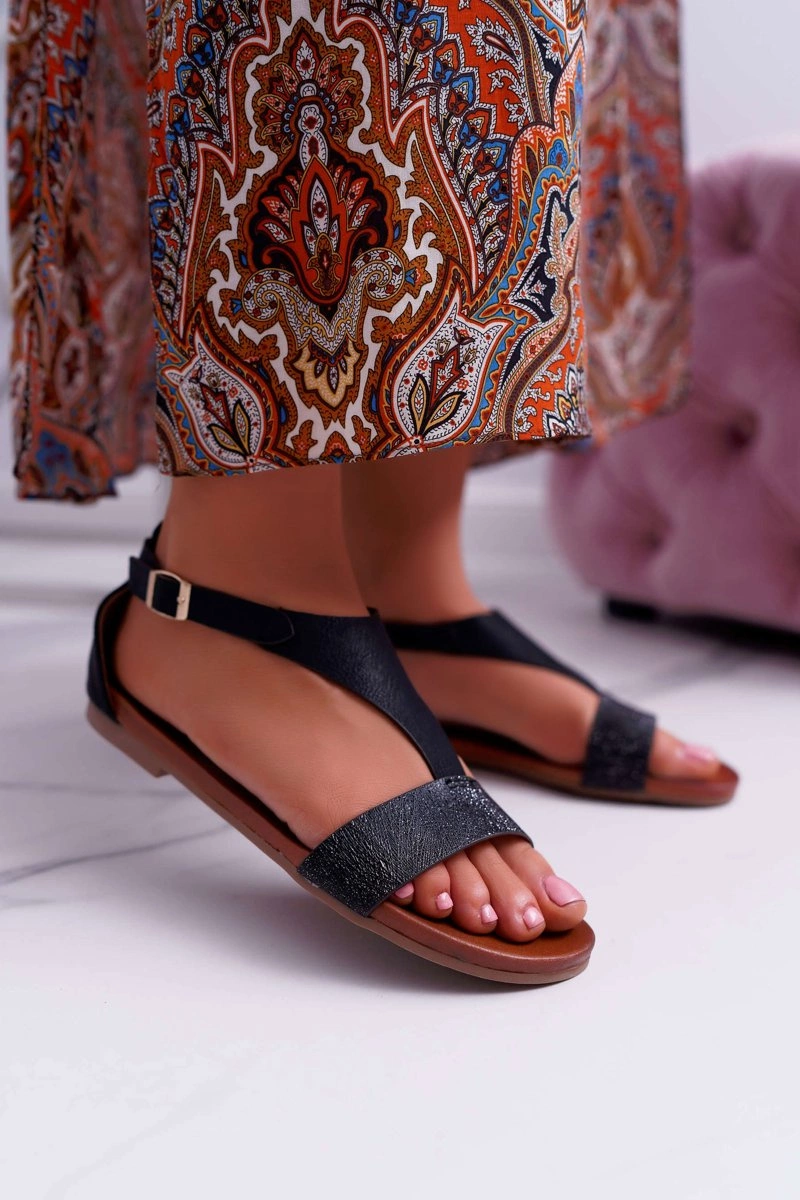 Sandały Damskie Płaskie Sergio Leone SK020 Czarne Magra