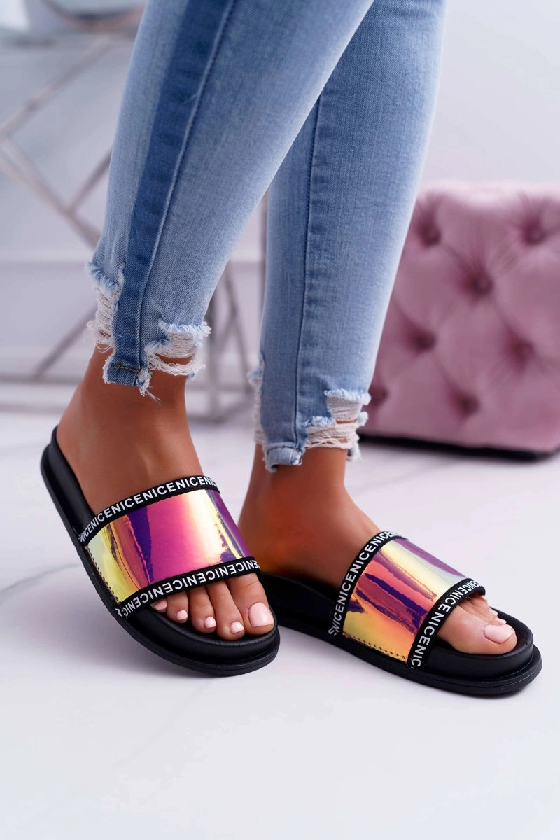 Zapewnij sobie komfort i nienaganny styl! Nasze opalizujące klapki to coś dla Ciebie! Klasyczny czarny kolor oraz wygodna, gumowa wkładka. Nie czekaj dłużej i kup teraz!