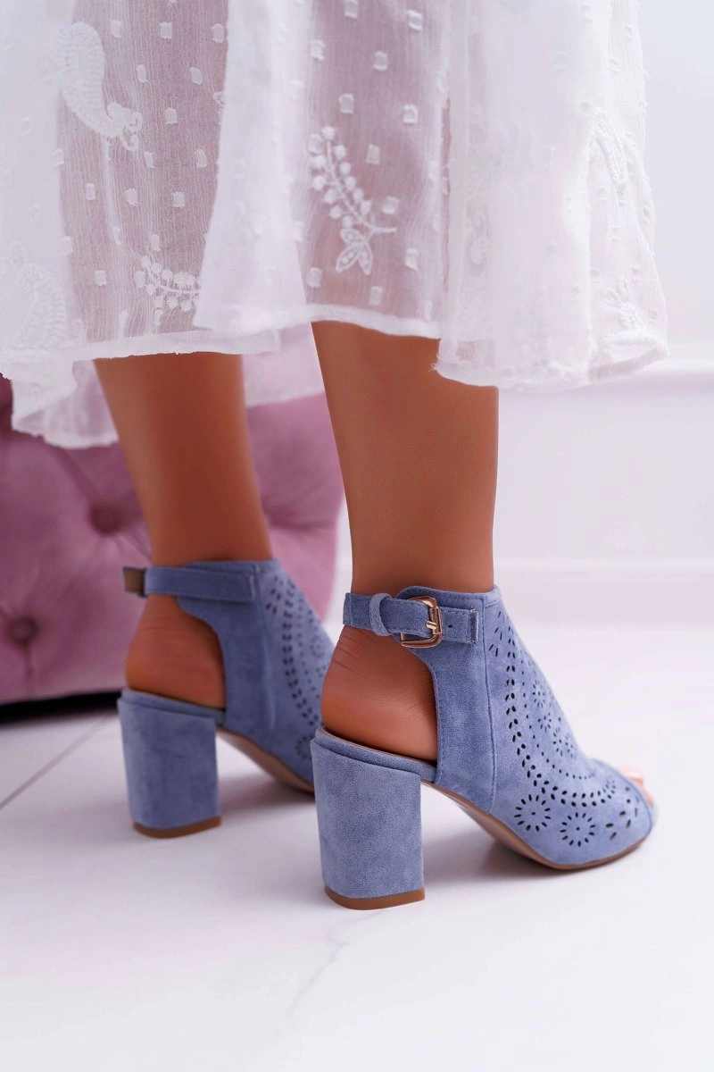 Modne sandały damskie wykonane z eko-zamszu. Piękne ażurowe wykończenie, nosek w tylu peep toe oraz stabilny słupek. Te buty mają wszystko o czym zawsze marzyłyśmy. Sandały zapinane na sprzączkę na wysokości kostki. Przy wyborze rozmiaru prosimy sugerować się tabelą rozmiarów, która dostępna jest po najechaniu bądź kliknięciu w dany rozmiar.