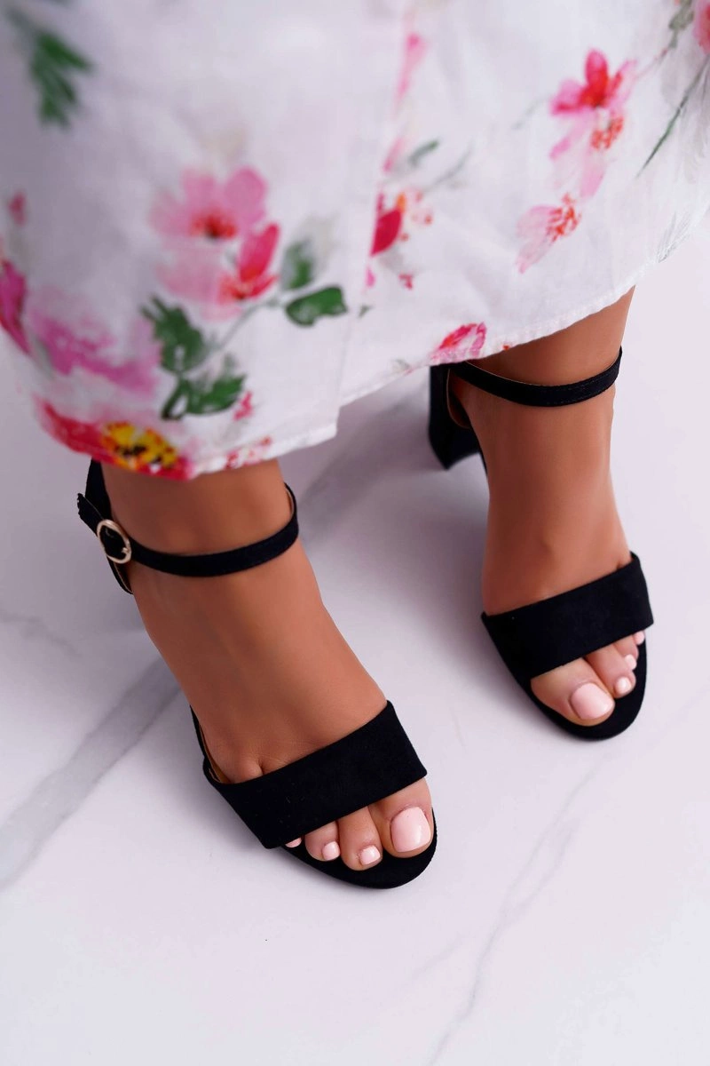 Klasyczne a zarazem eleganckie sandały na słupku, sprawdzą się w każdej codziennej sytuacji. Będą również świetnym wyborem podczas tych bardziej formalnych spotkań. Zapinane na pasek wokół kostki. Perfekcyjne na letni sezon. Numeracja typowa. Prosimy kierować się swoim rozmiarem.