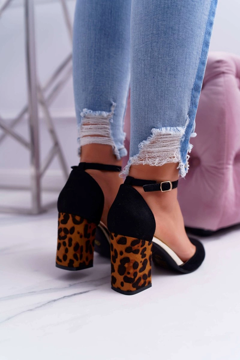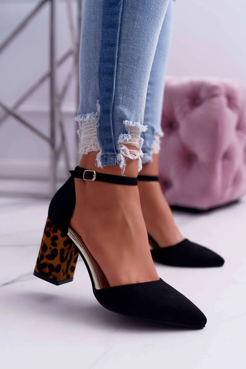 Czółenka Damskie Na Słupku Panterki Czarne Ferri