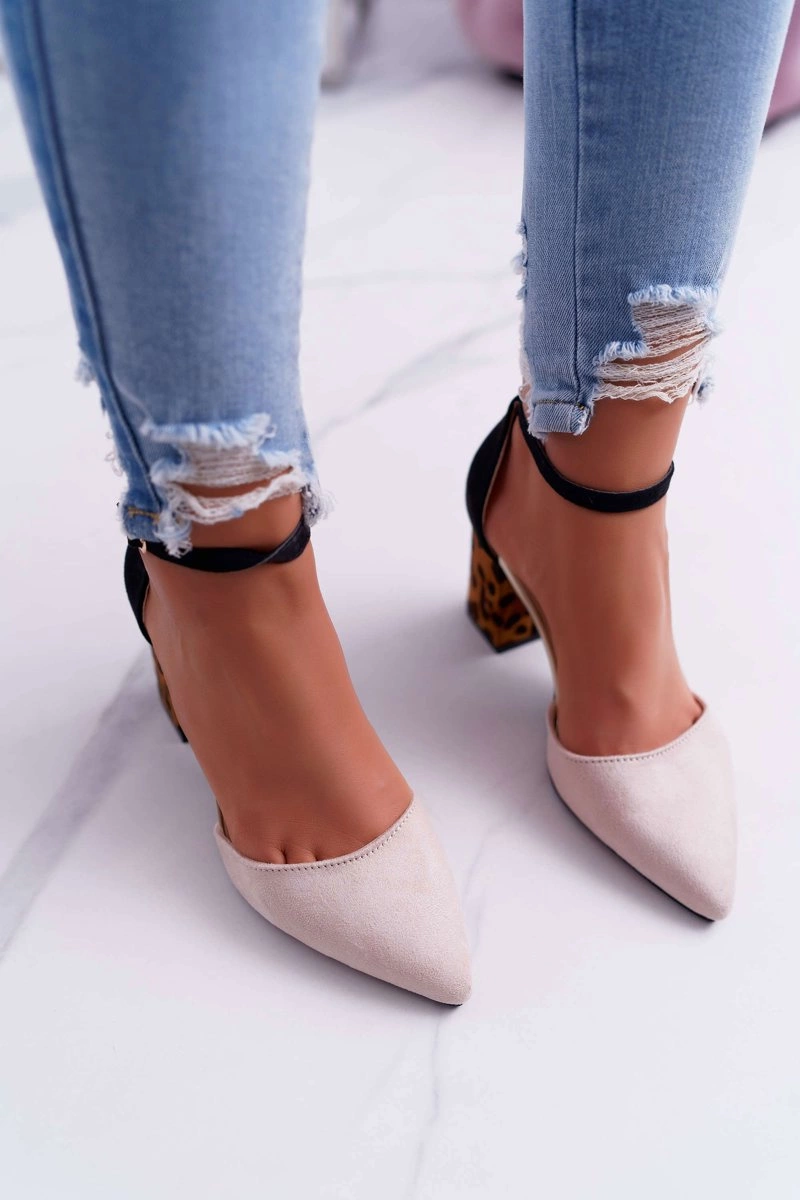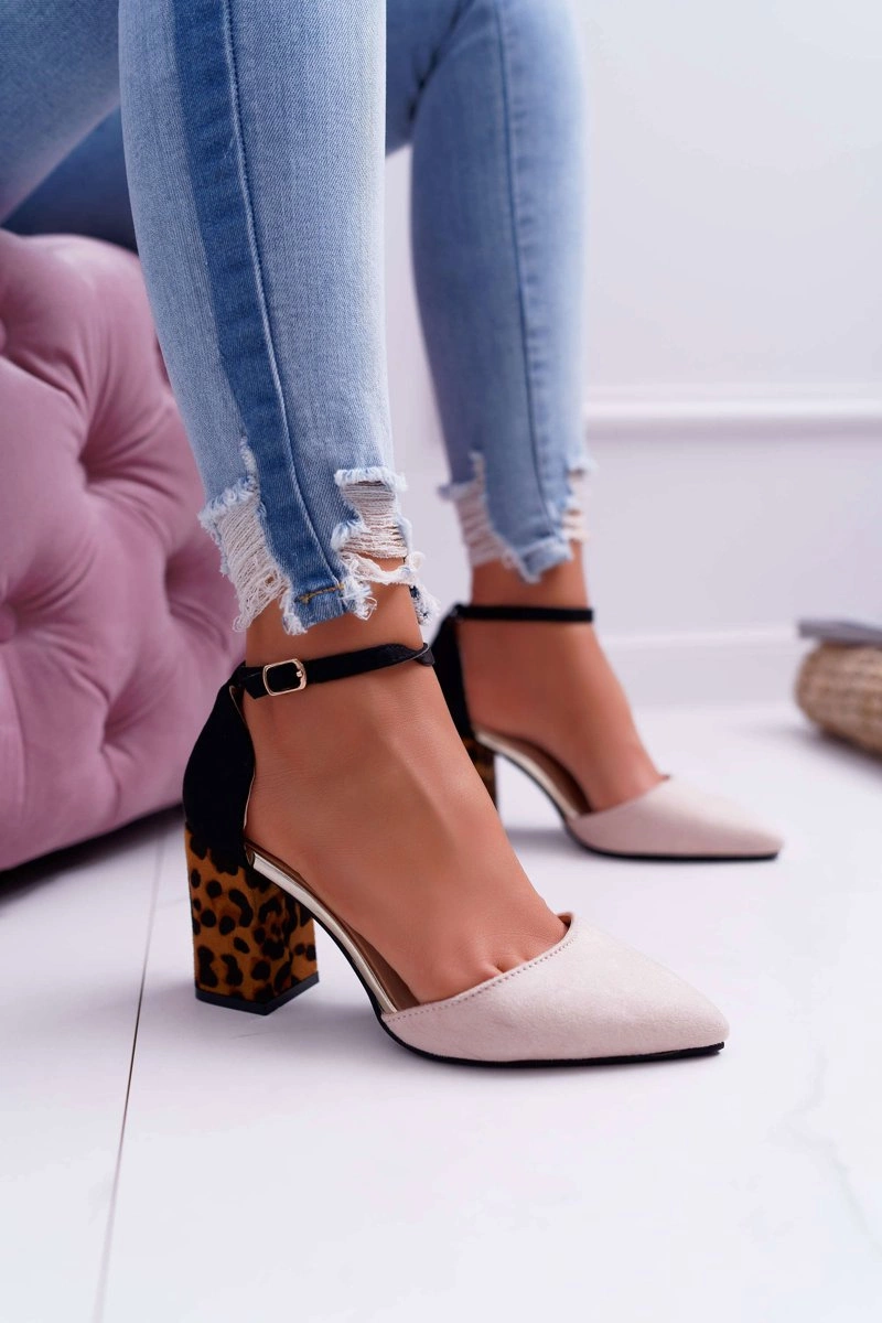 Czółenka Damskie Na Słupku Panterki Beżowe Ferri