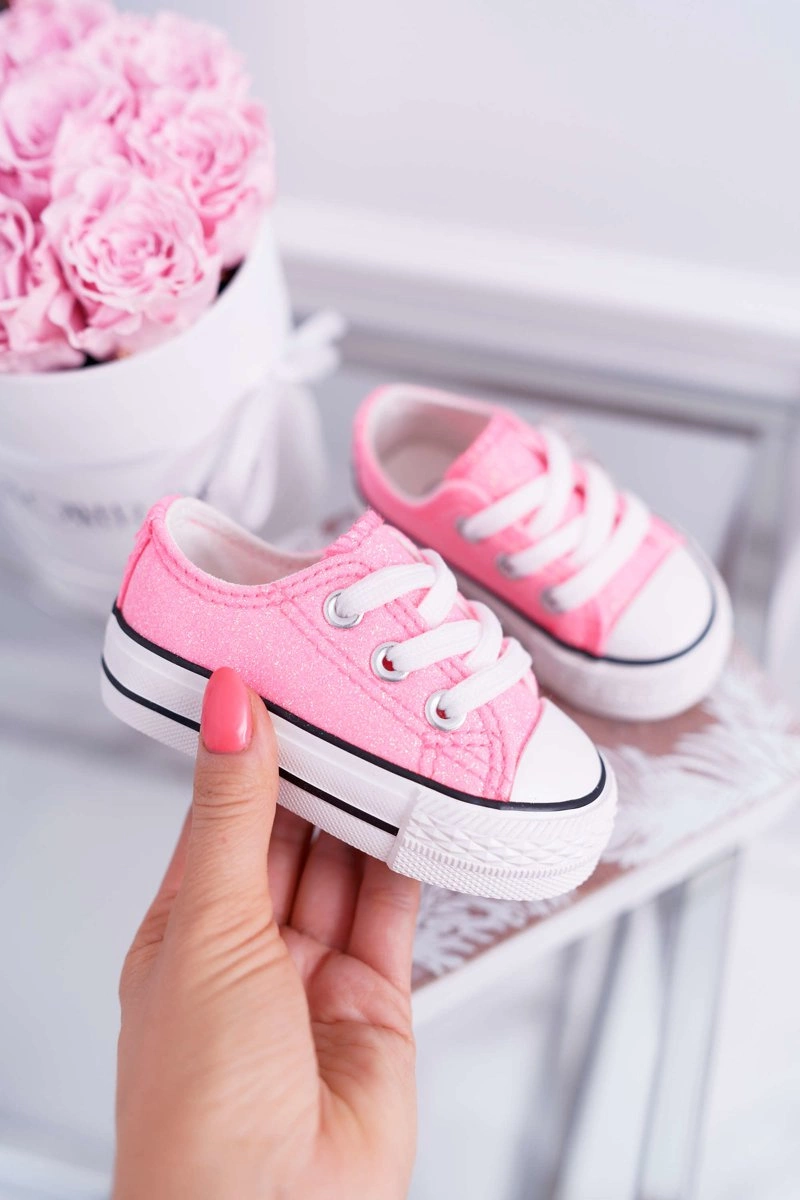 Dziecięce Brokatowe Trampki Różowe Misty