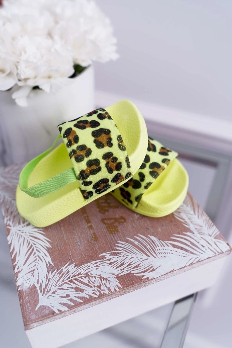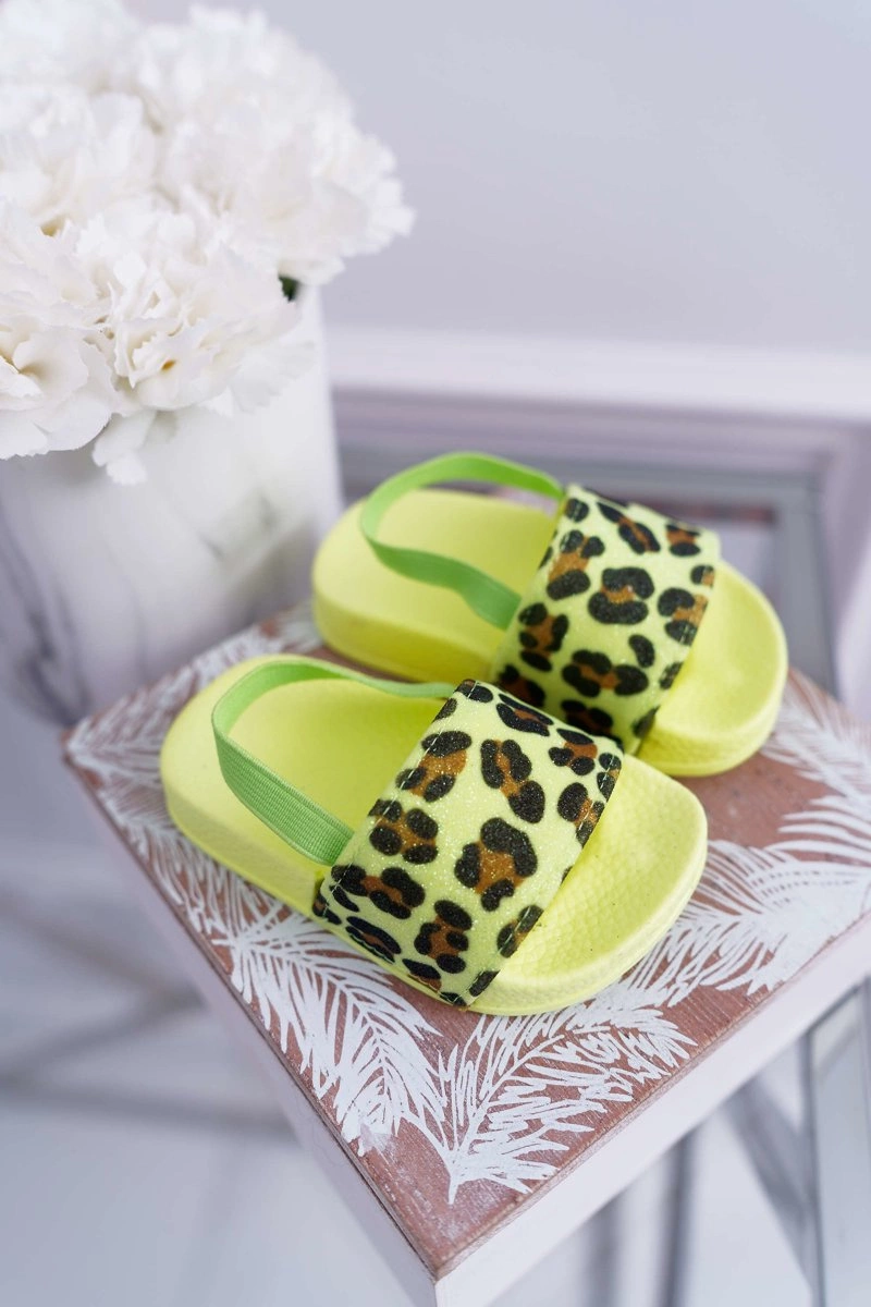 Dziecięce Gumowe Klapki Z Brokatem Limonkowe Rimia