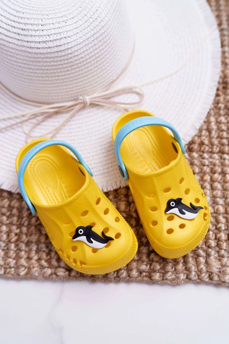 Dziecięce Klapki Domowe Żółte Kroksy z Delfinem
