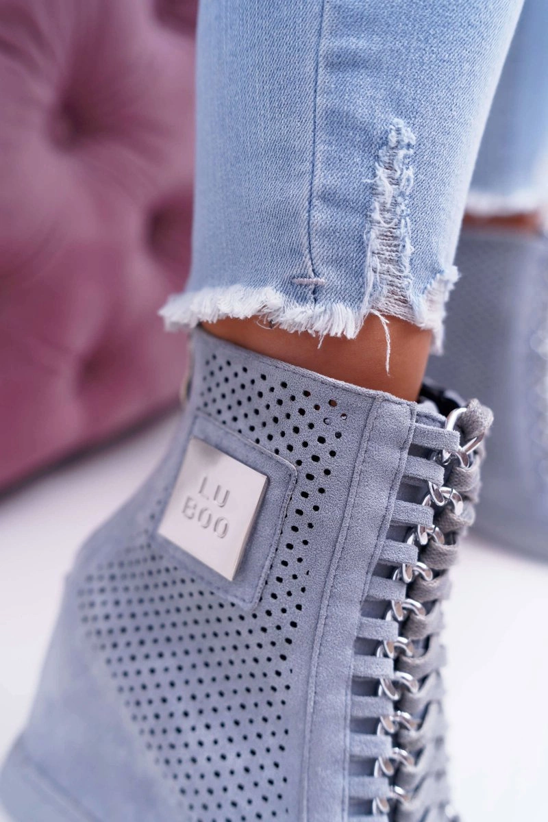 Damskie Sneakersy Lu Boo Ażurowe Zamszowe Niebieskie Clamma
