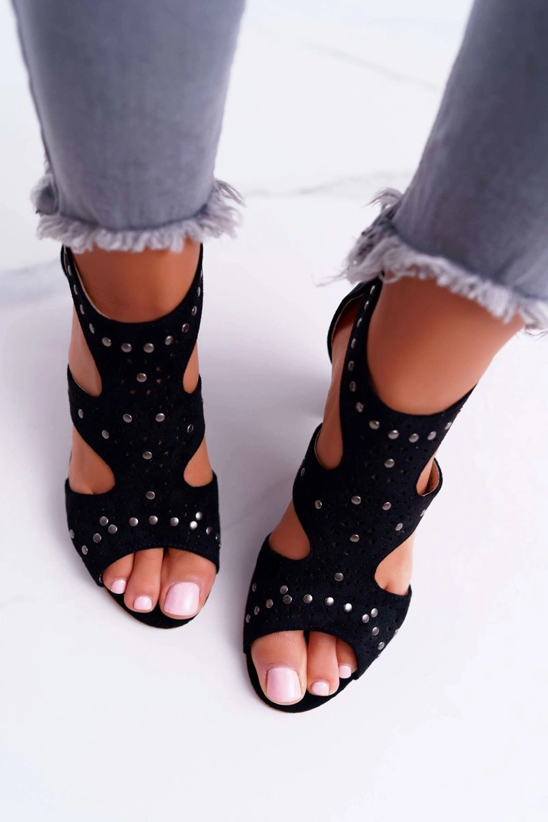 Zamszowe Sandały Na Słupku Lu Boo Czarne