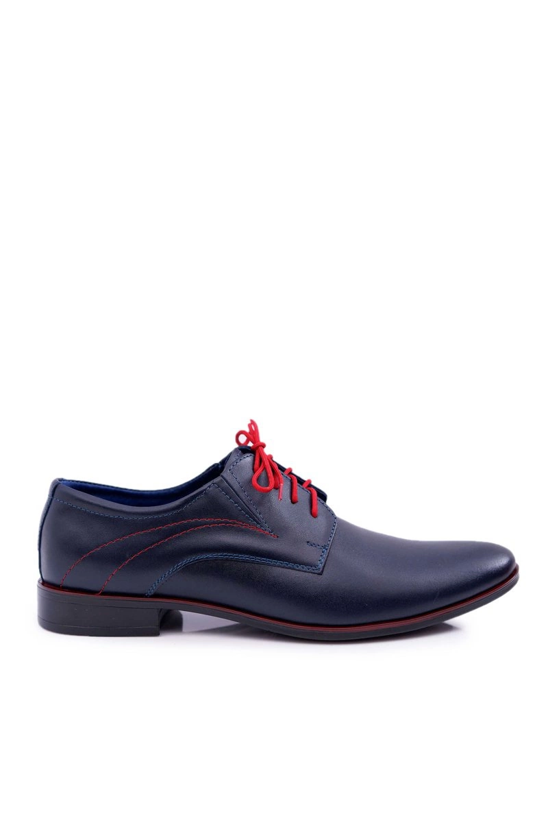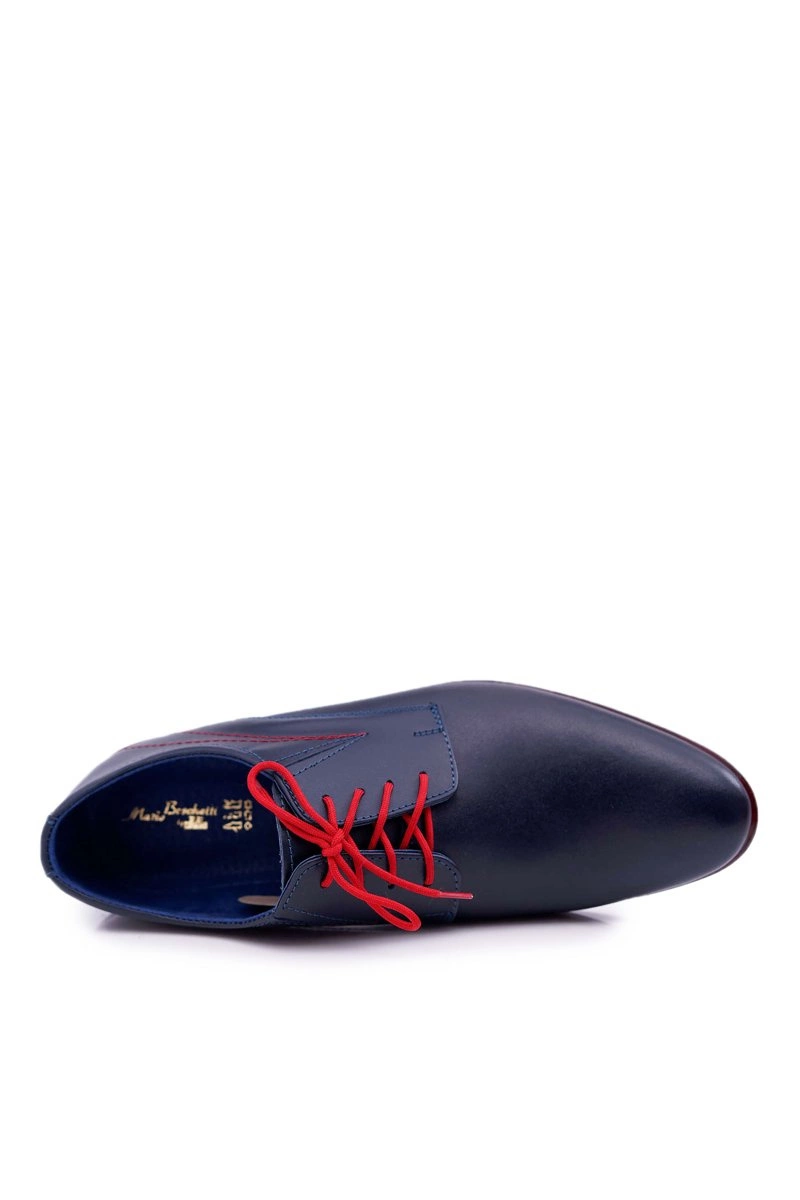 Półbuty Męskie Eleganckie Skórzane Granatowe Menelaos