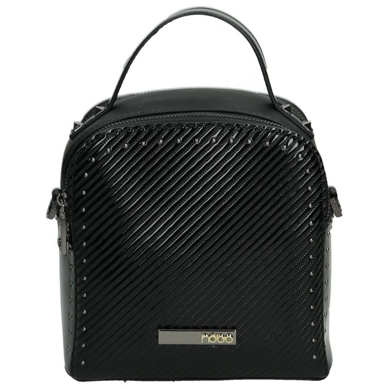 Nieodłącznym elementem kobiecej garderoby jest piękna torebka. Oryginalna torebka w stylu kuferka. Przód zdobiony delikatnymi prążkami oraz małymi ćwiekami. Torebka posiada dwie komory i jest zapinana na suwak. Możliwość odpięcia paska i noszenia jej w ręku. Oryginalność i subtelność od NOBO.