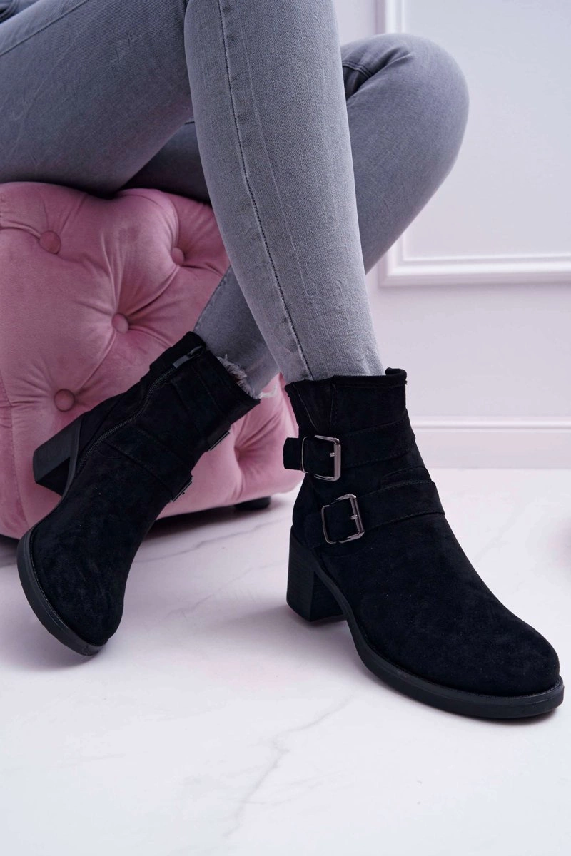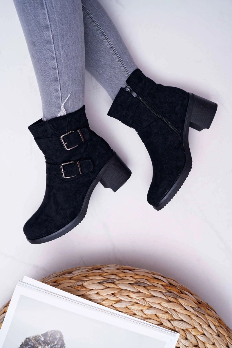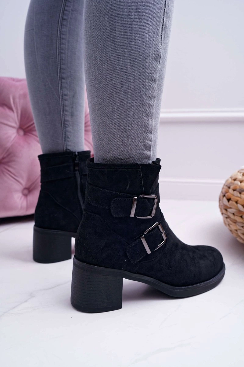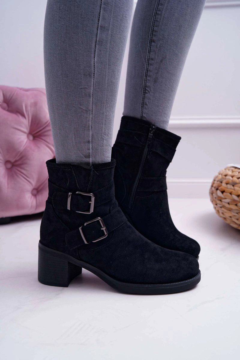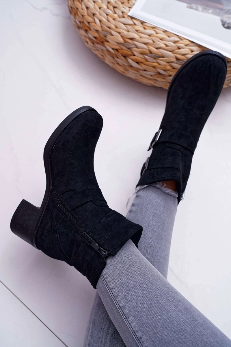 Botki Damskie Na Obcasie Zamszowe Czarne Fagret