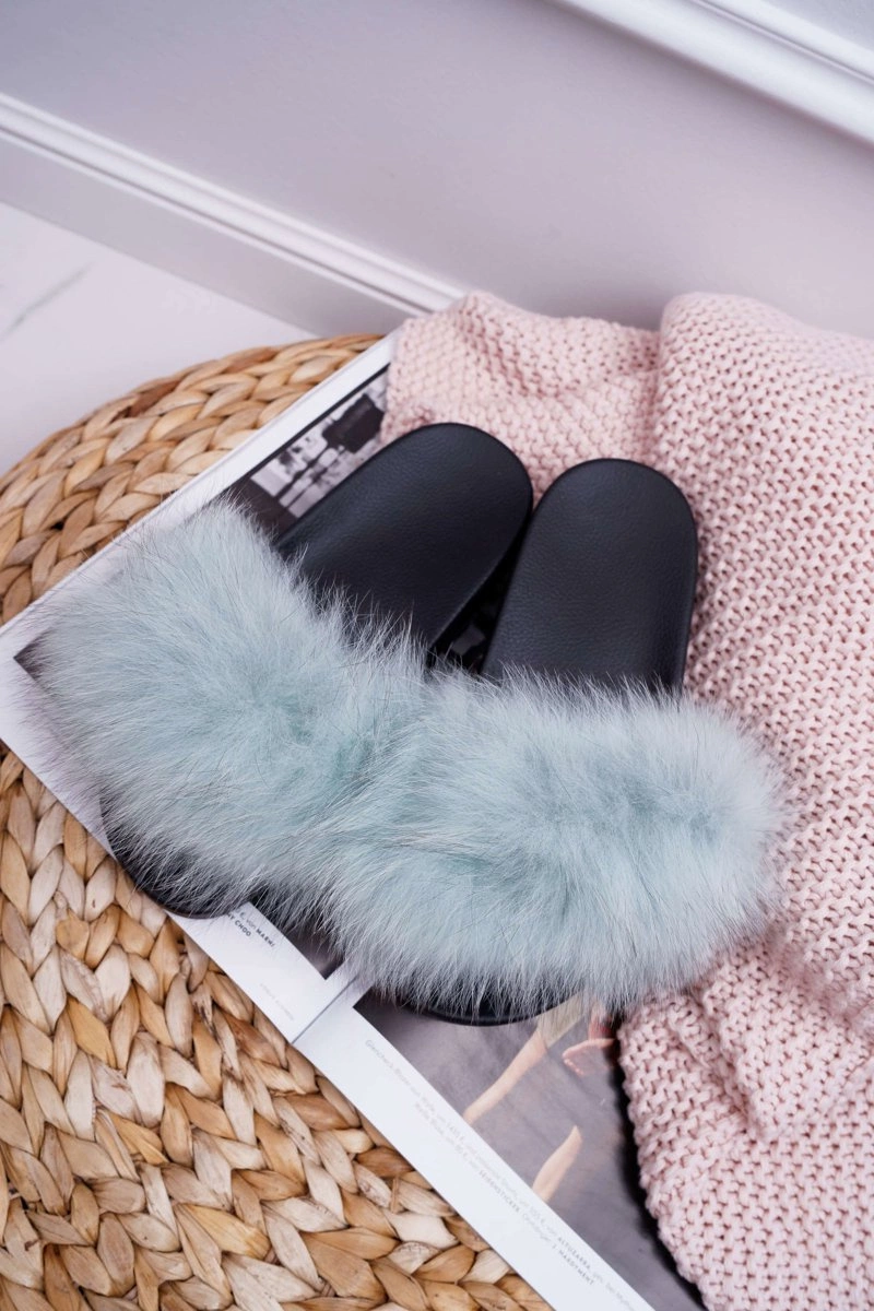 Damskie Klapki z Naturalnym Futerkiem Miętowe Naturis