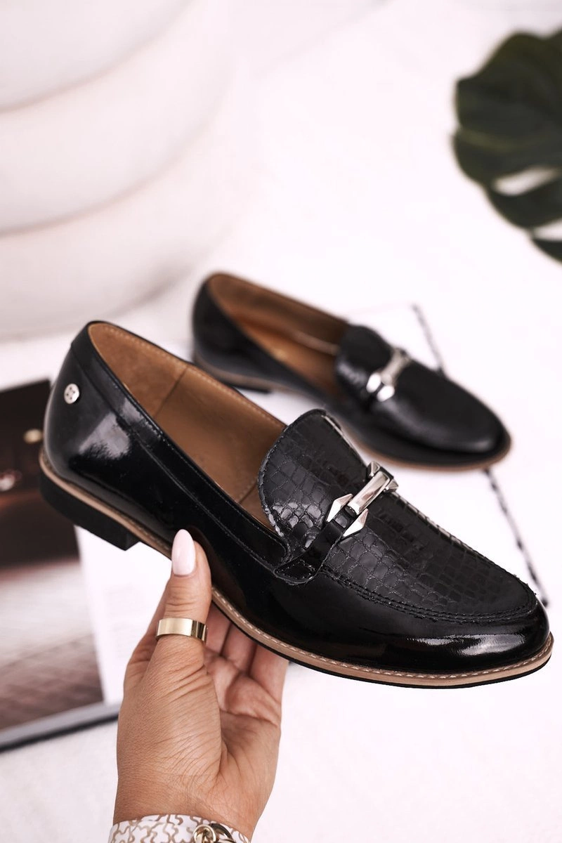 Damskie Półbuty Maciejka Lakierowane Loafery Czarne 4099A-01/00-1