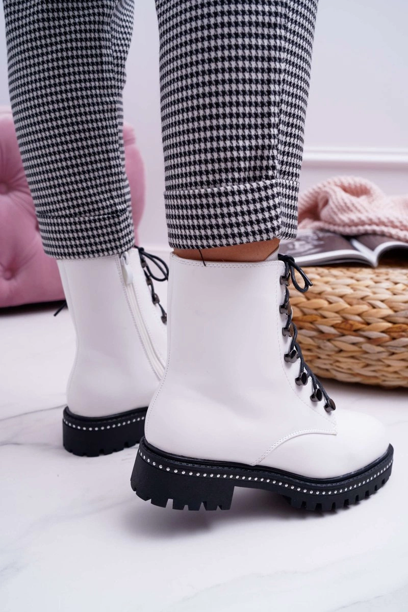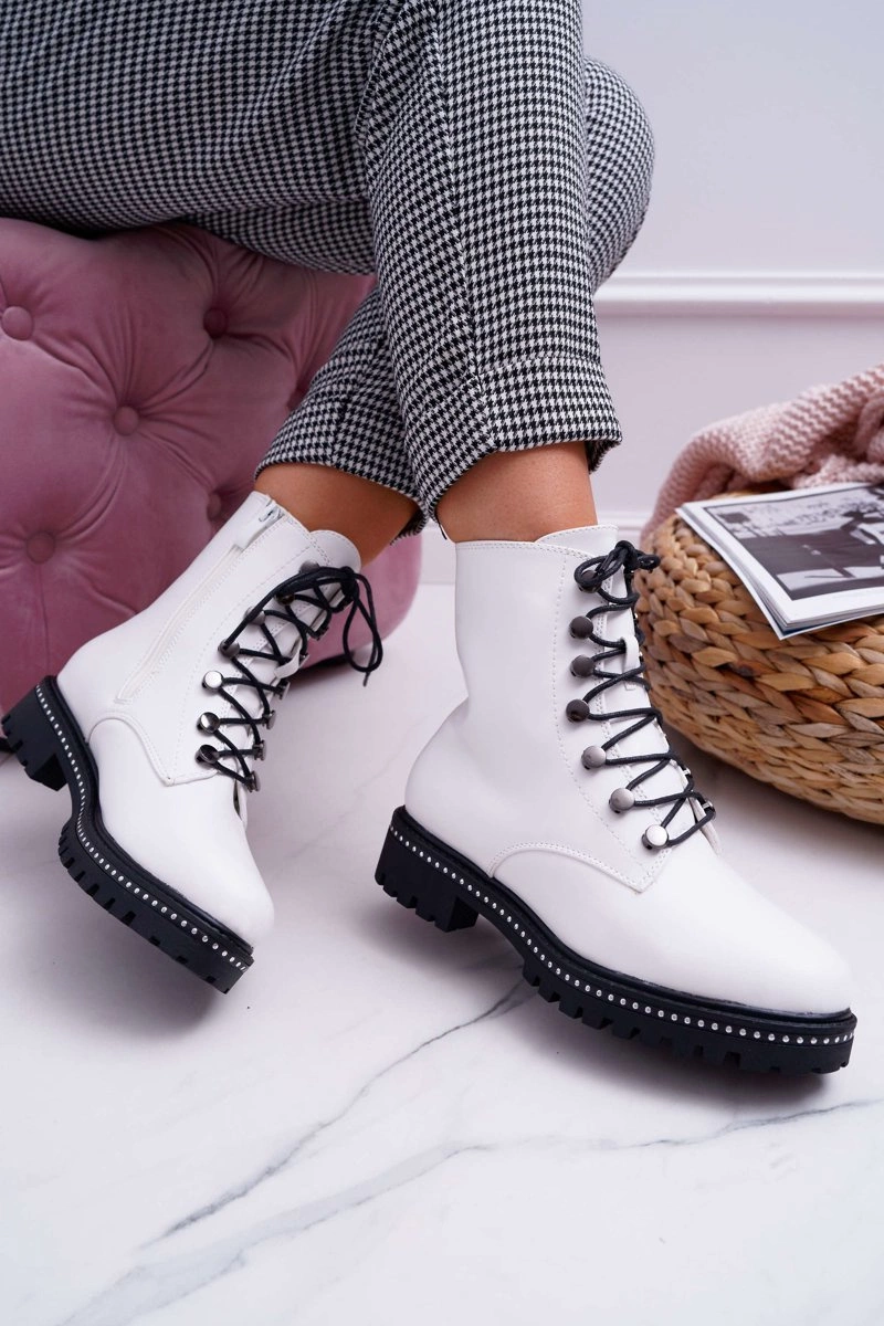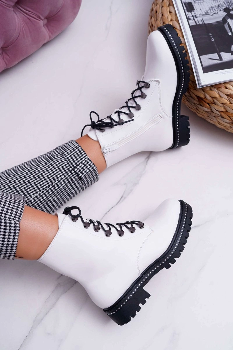 Botki Damskie Płaski Obcas Wysokie Glany Białe Buena