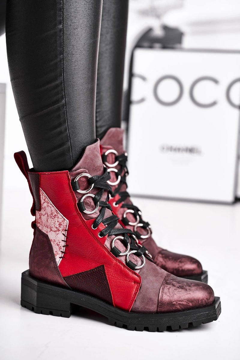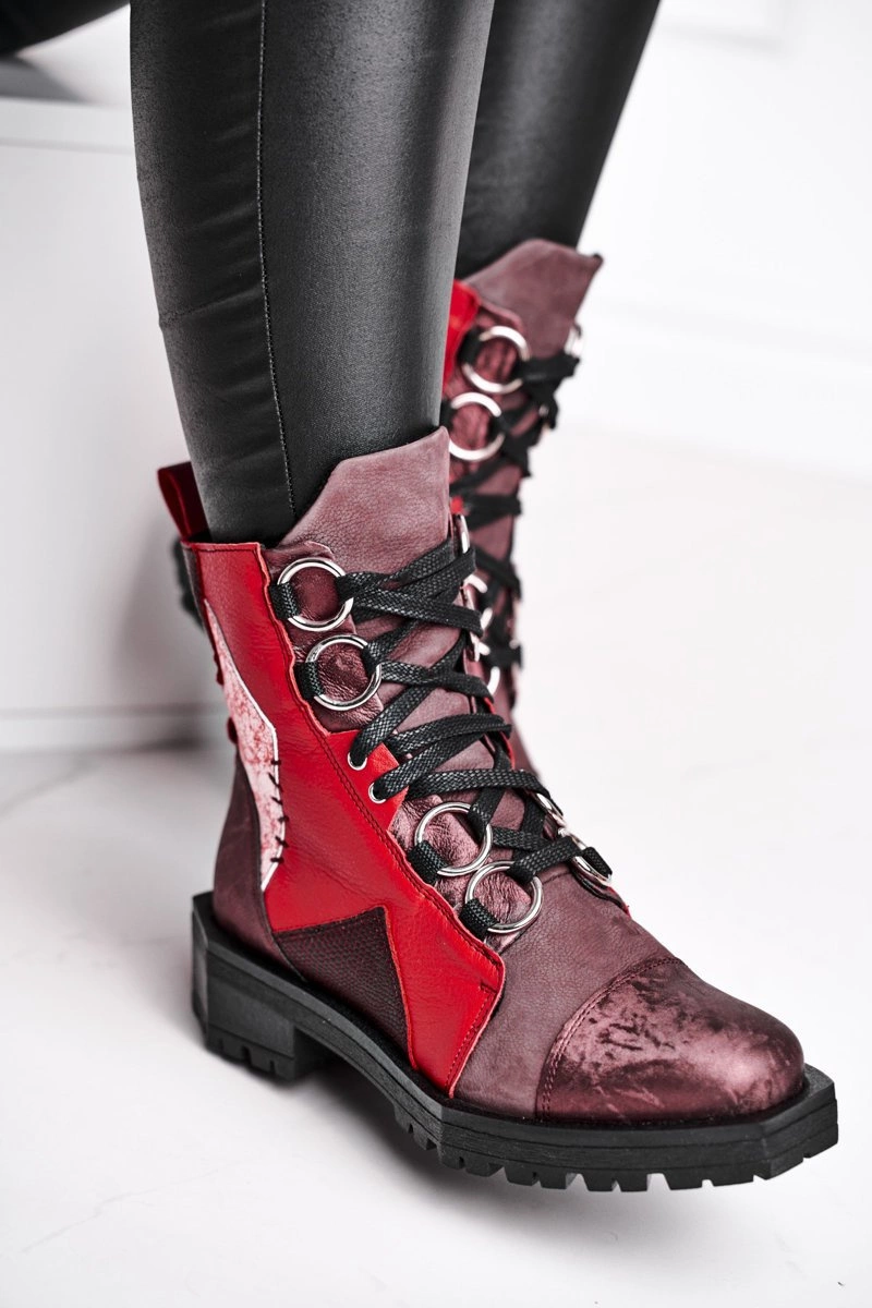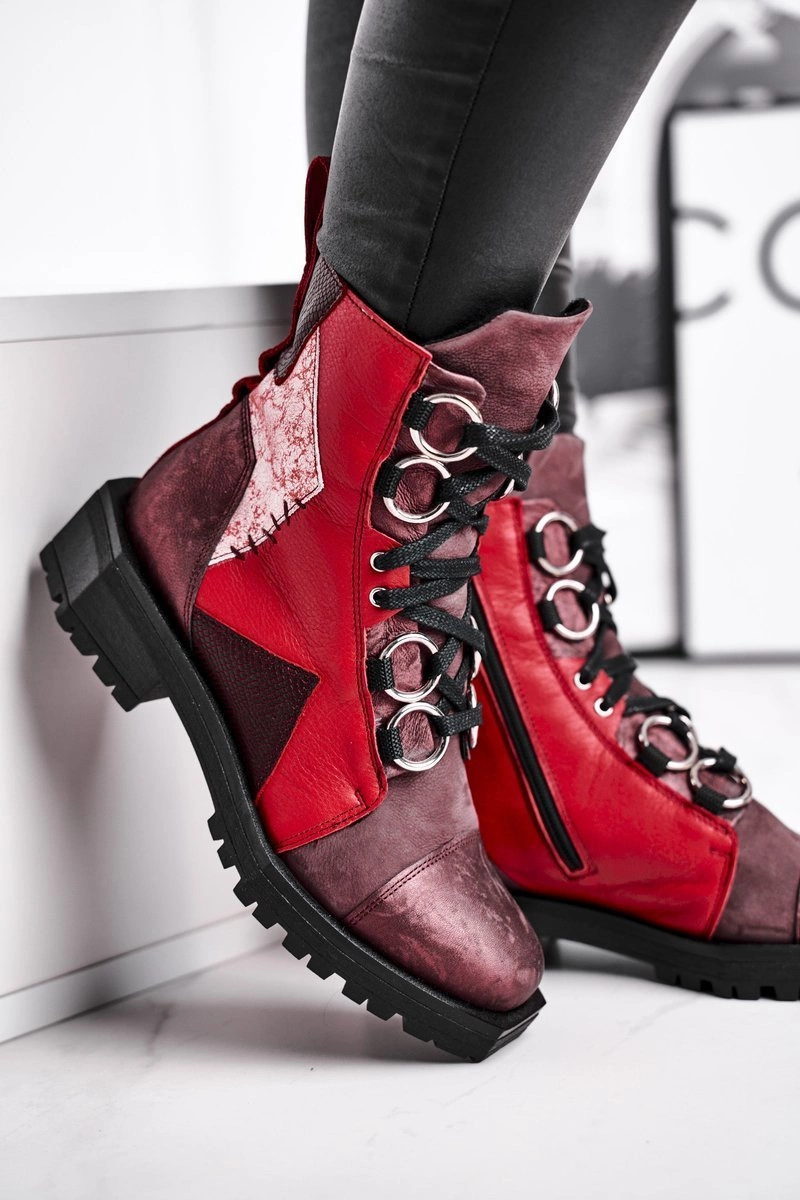 Botki Damskie Skórzane Trzewiki Maciejka Bordowe 04184-23/00-3
