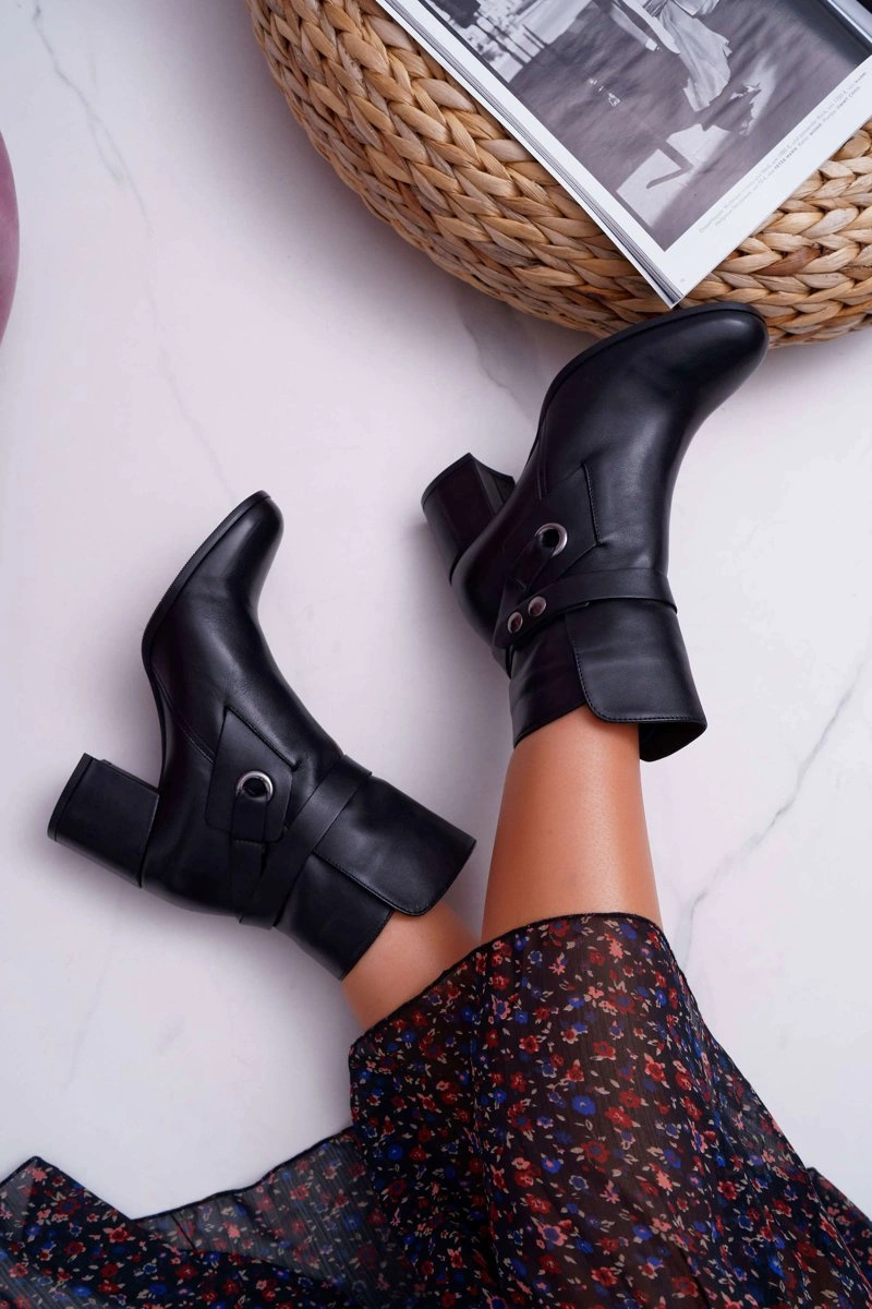 Botki Damskie Skórzane Wsuwane Czarne 1820 Laura Messi