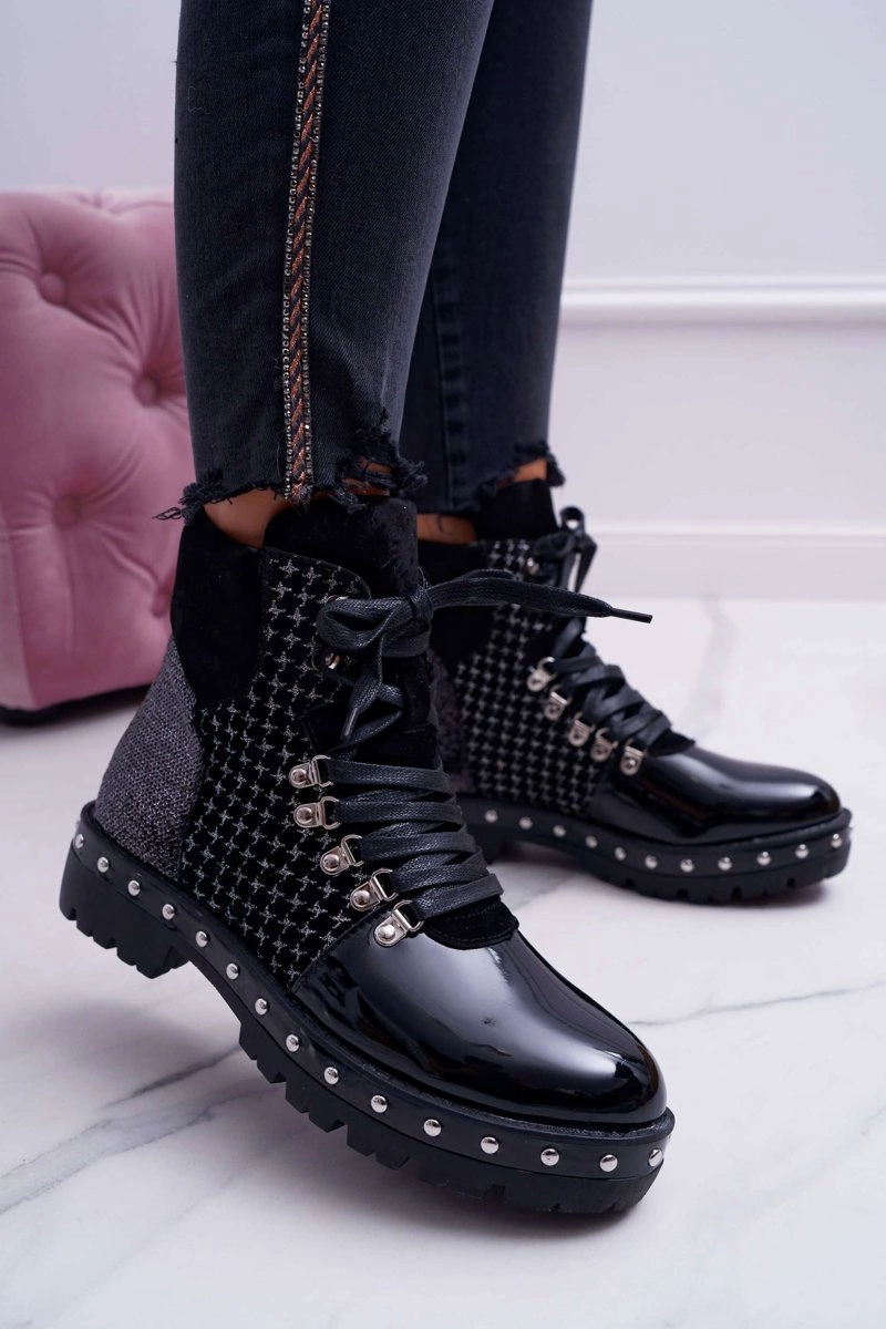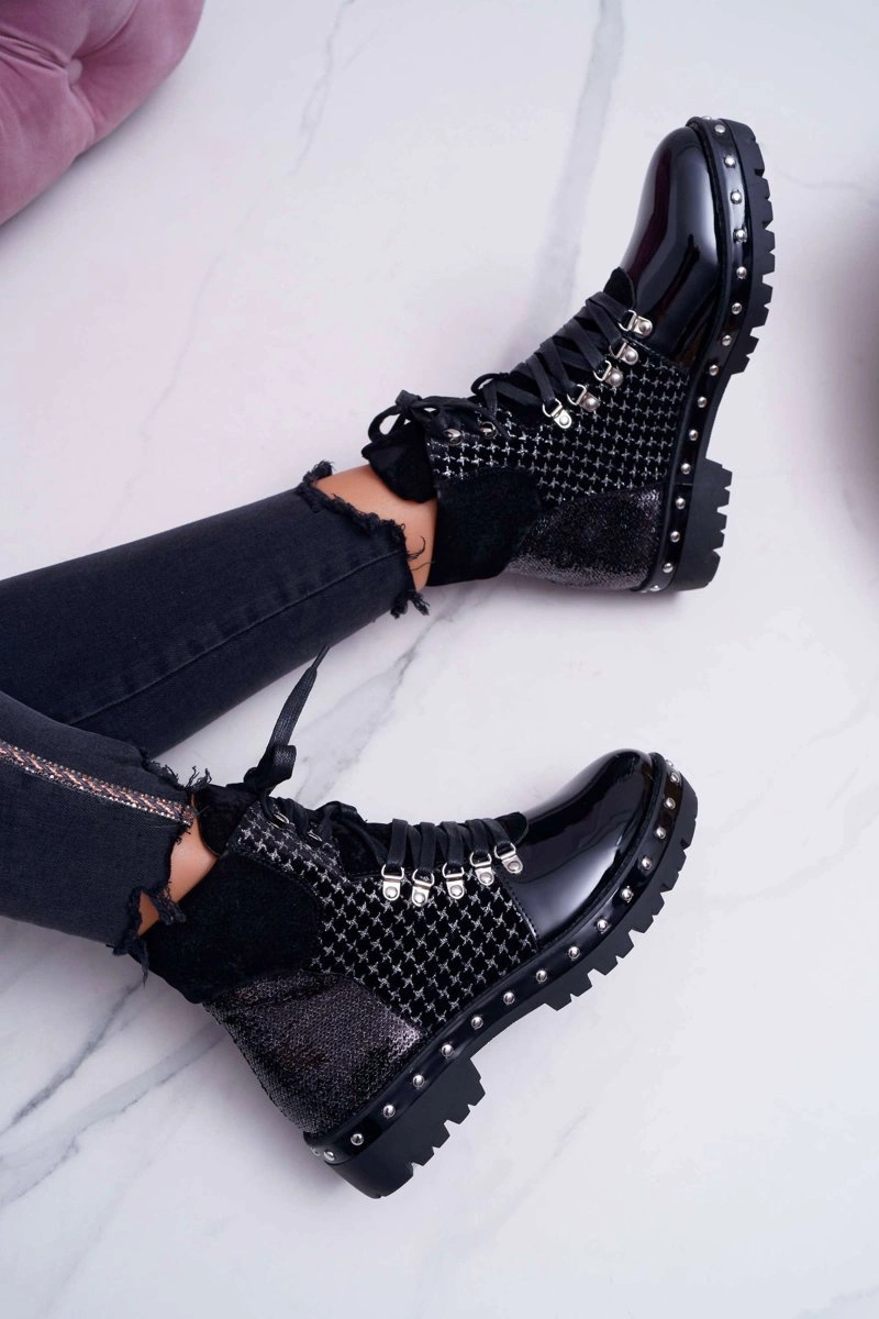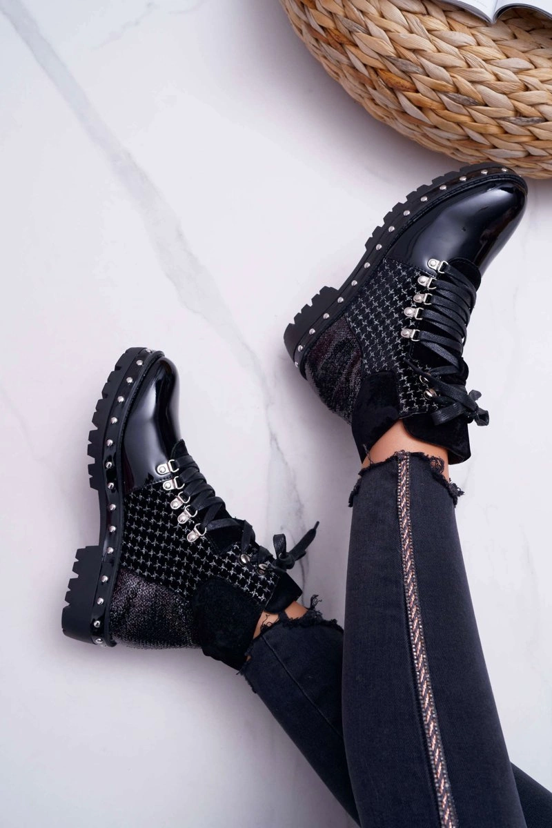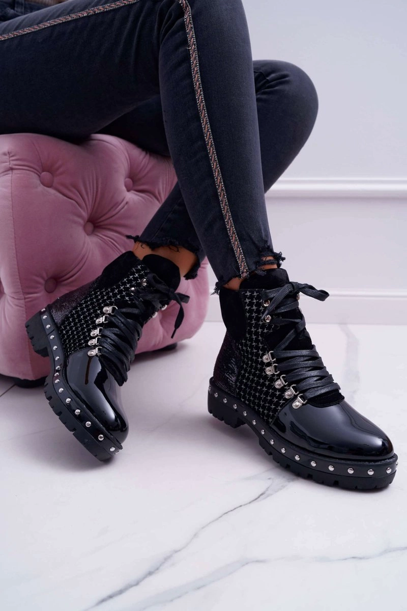 Botki Damskie Płaski Obcas Czarne Farell