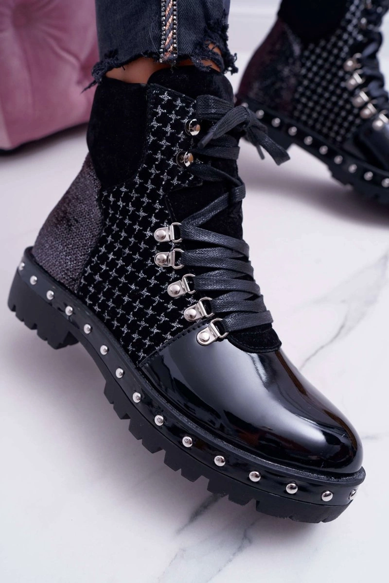Wspaniałe botki, które wyróżniają się swym ekstrawaganckim wyglądem. Stworzone z połączenia różnych wstawek materiałów. Lakierowana eko-skóra, eko-zamsz czy przepiękne cekiny - te buty mają dosłownie wszystko! Dodatkowo mocniejszego akcentu dodają im nity wokół podeszwy. Przy wyborze rozmiaru prosimy sugerować się tabelą rozmiarów, która dostępna jest po najechaniu bądź kliknięciu w dany rozmiar.