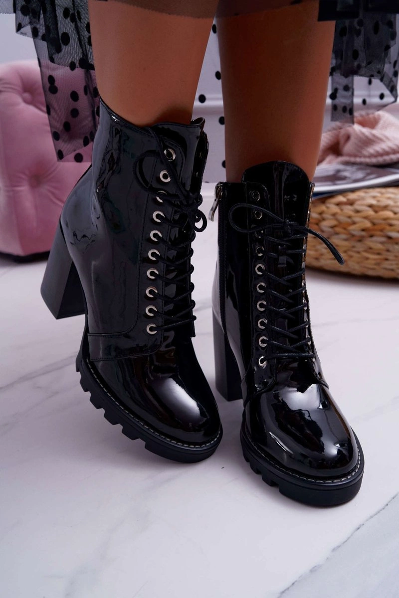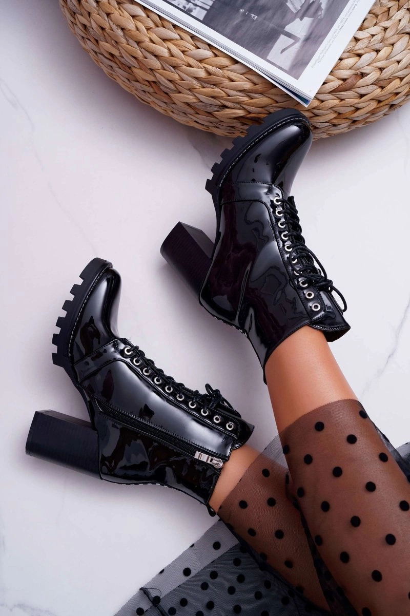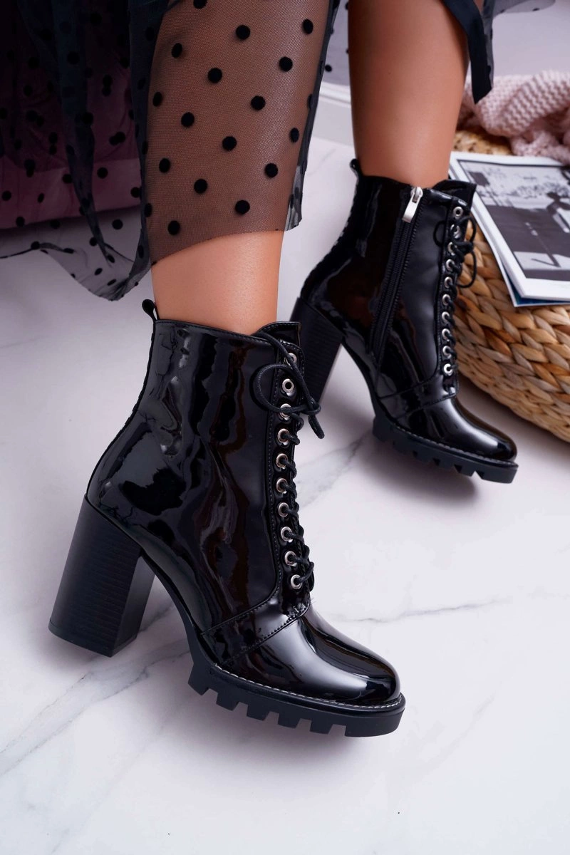 Botki Damskie Na Słupku Lakierowane Czarne Insist