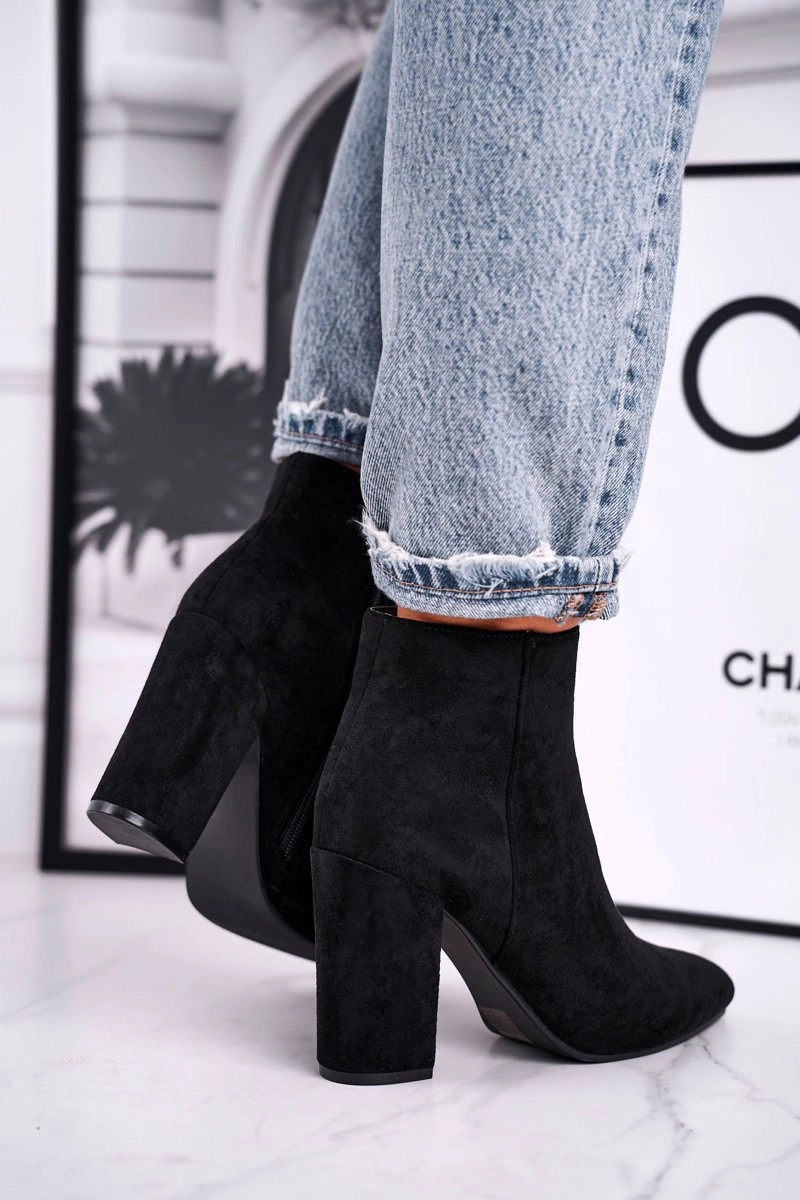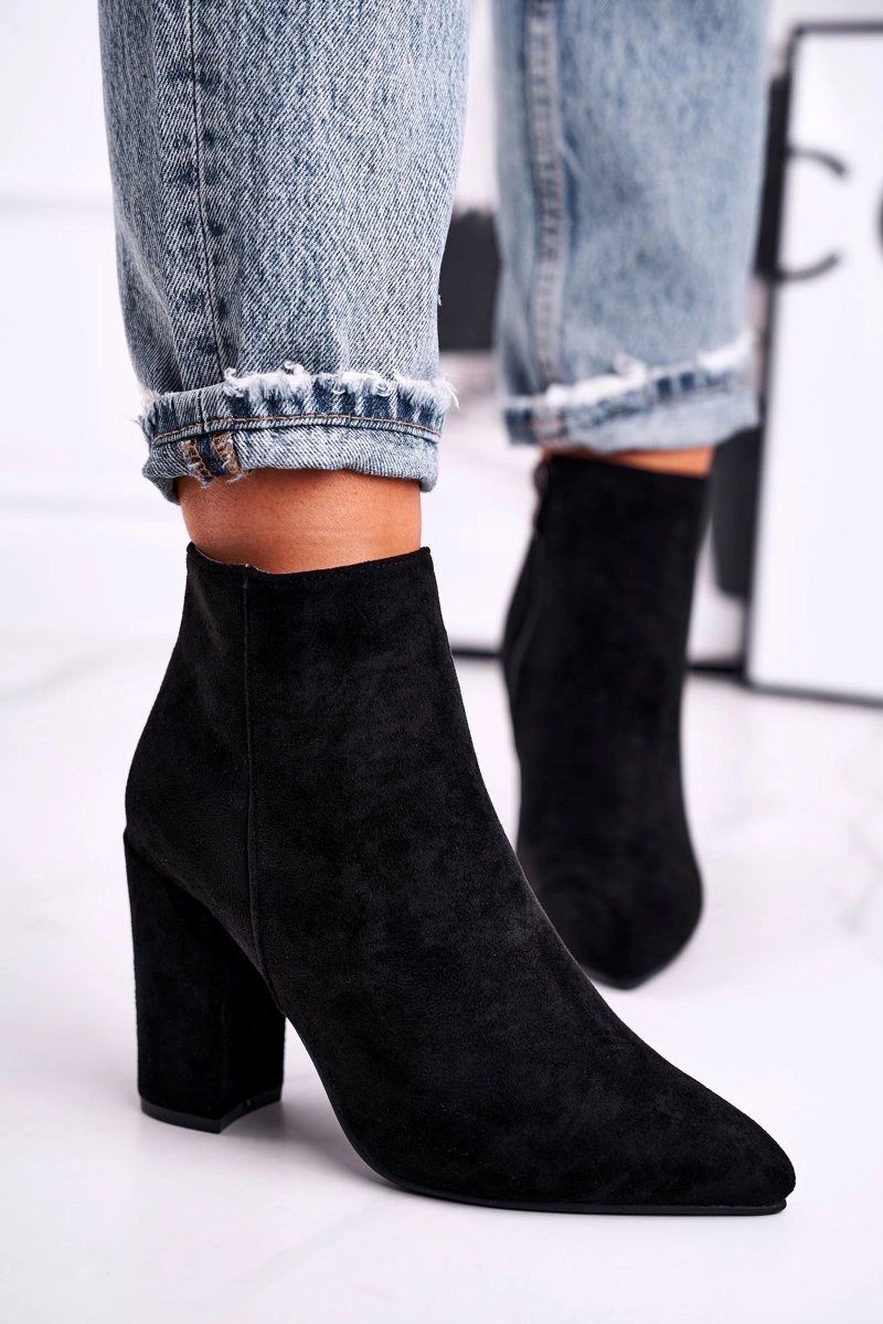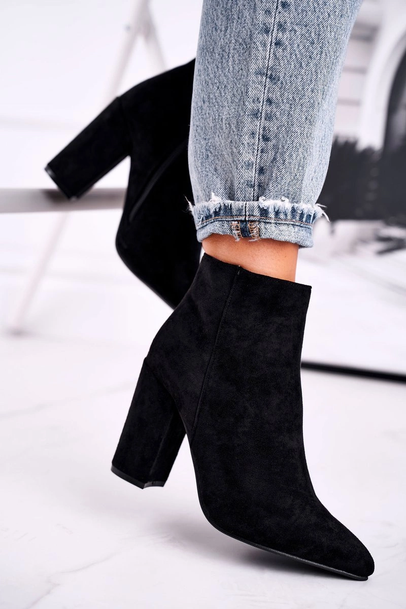 Botki Damskie na Słupku Zamszowe Czarne Sharks