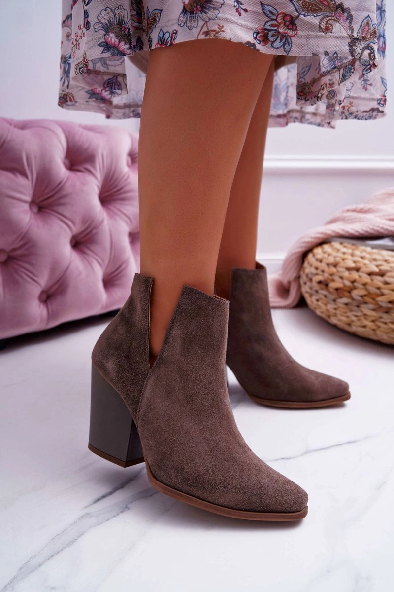 Botki Damskie Na Obcasie Wiosenne Skóra Zamsz Ciemne Cappuccino Nicole 2430
