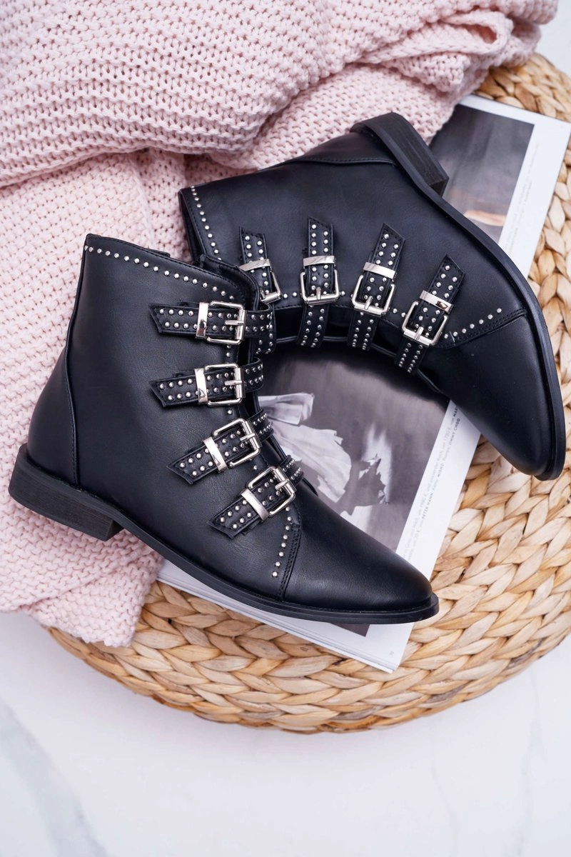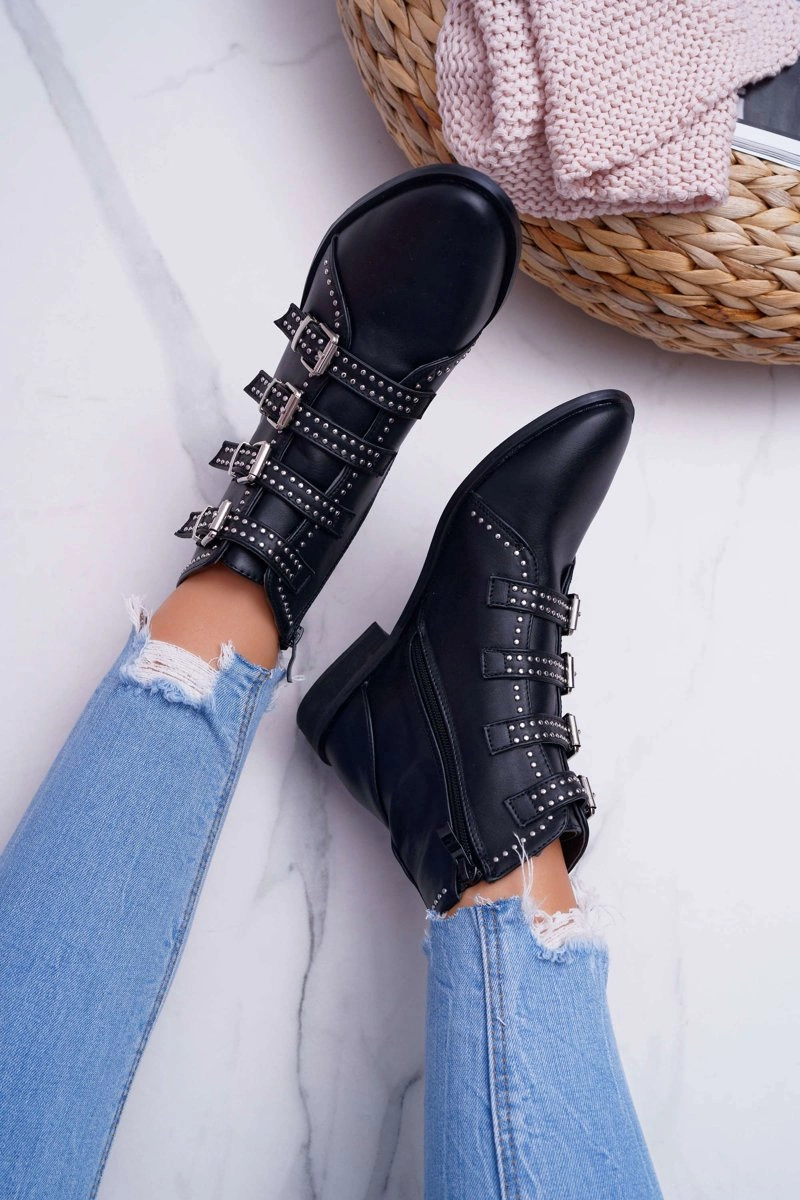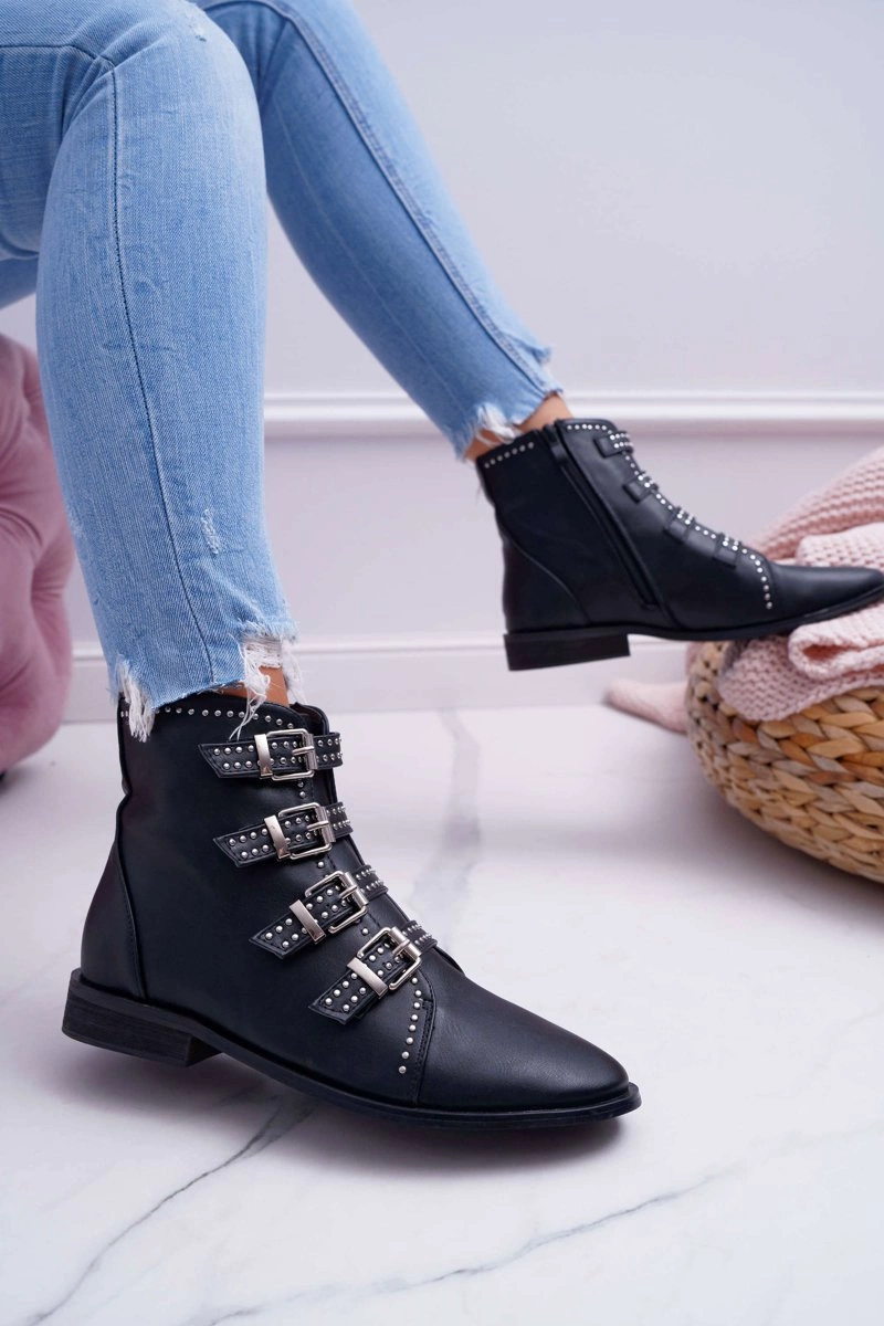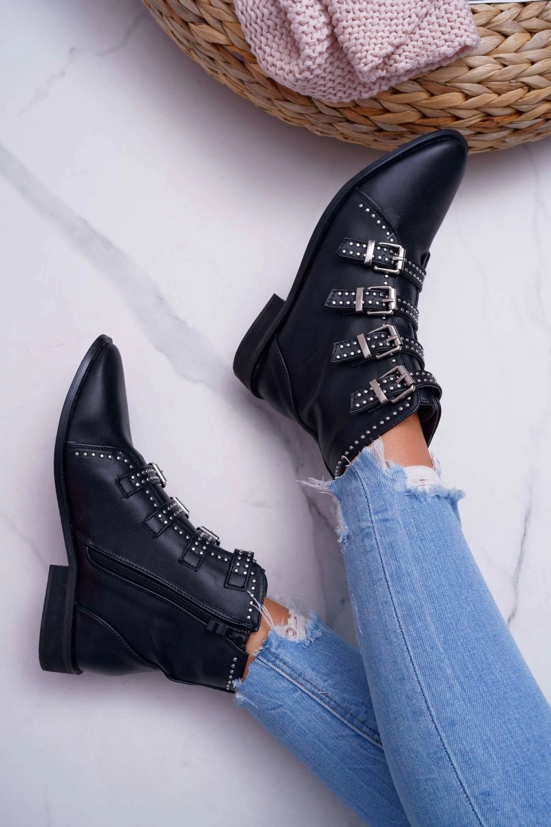 Damskie Botki Nity Klamry Czarne Berugio