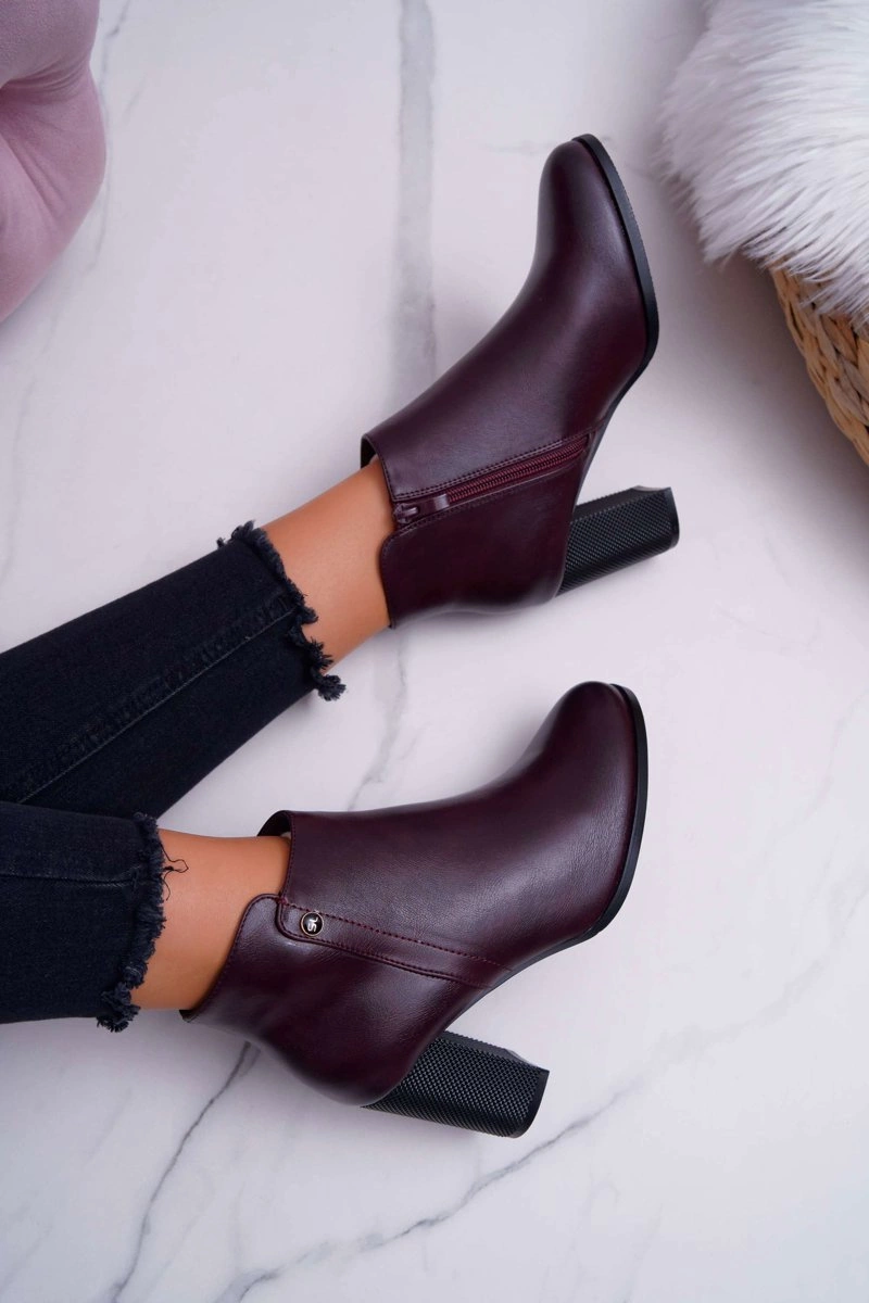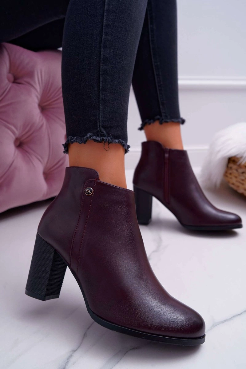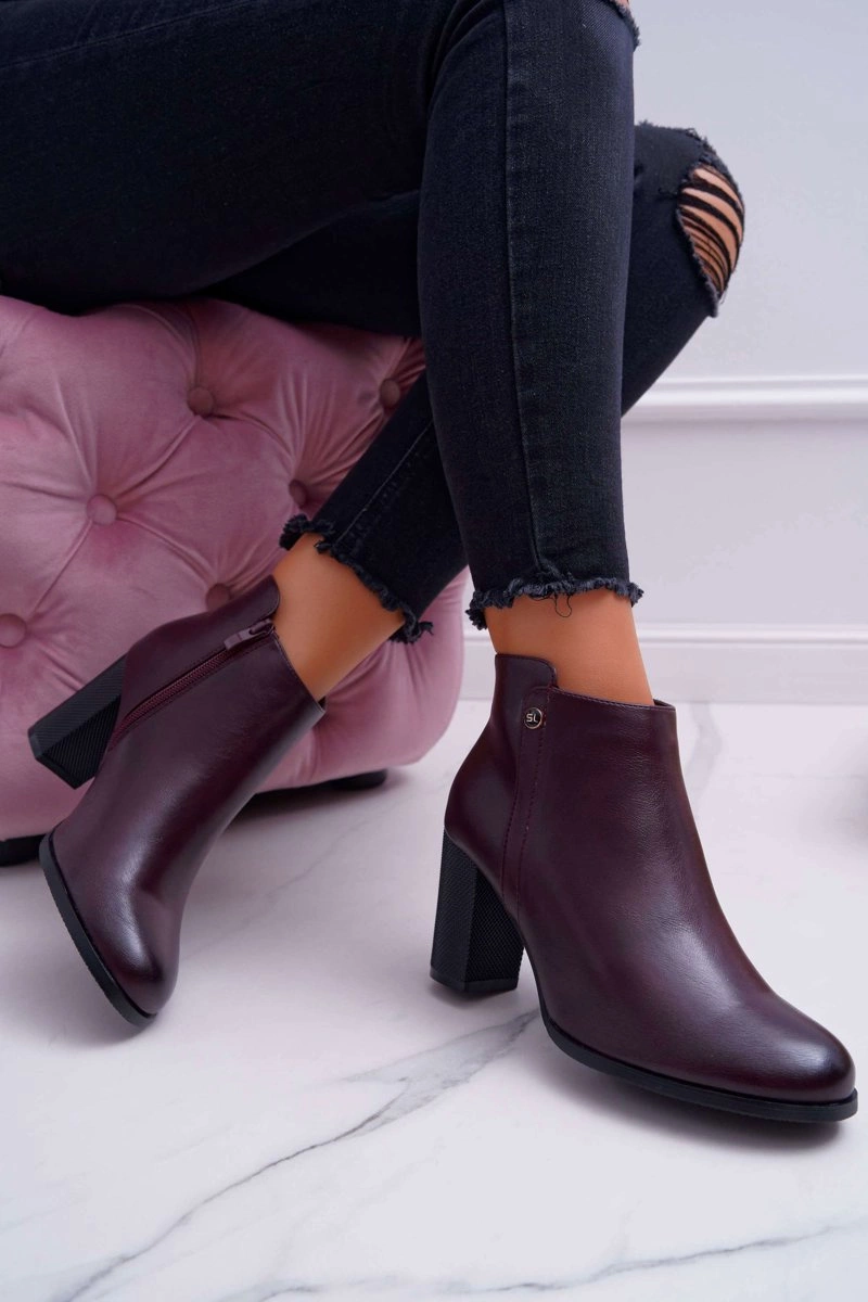 Botki Damskie Na Obcasie Sergio Leone Bordowe BT518