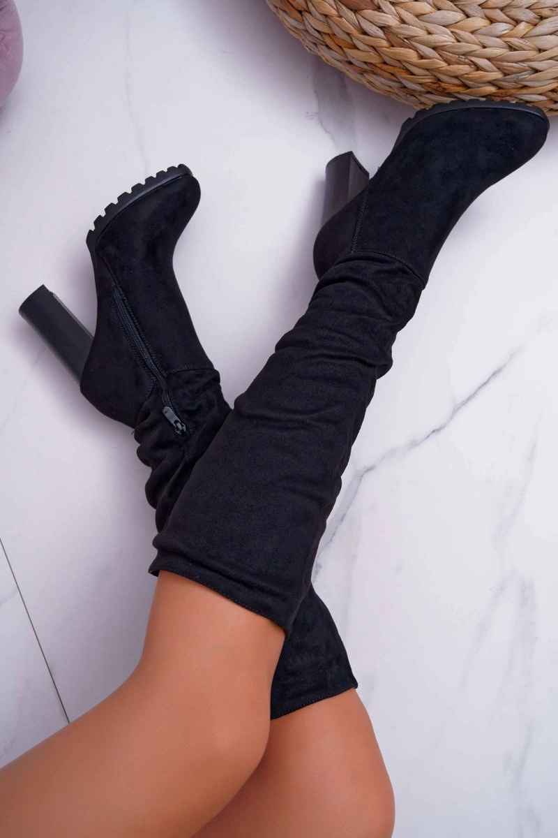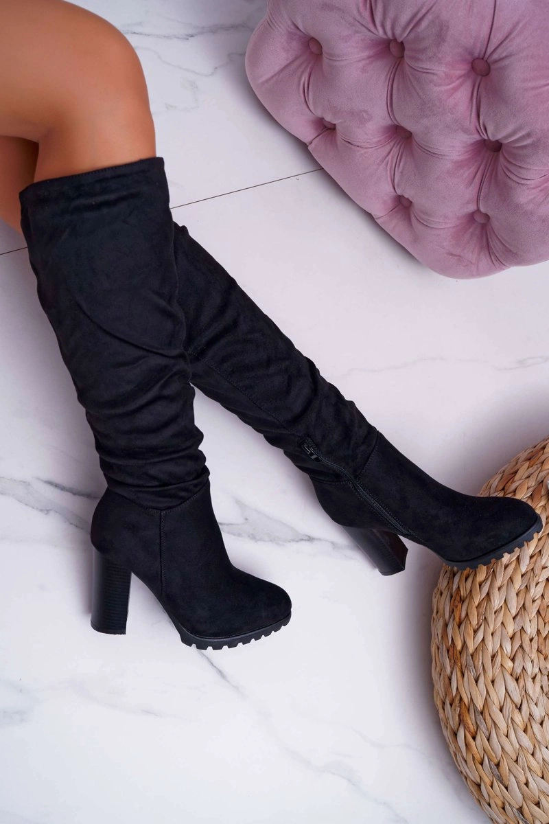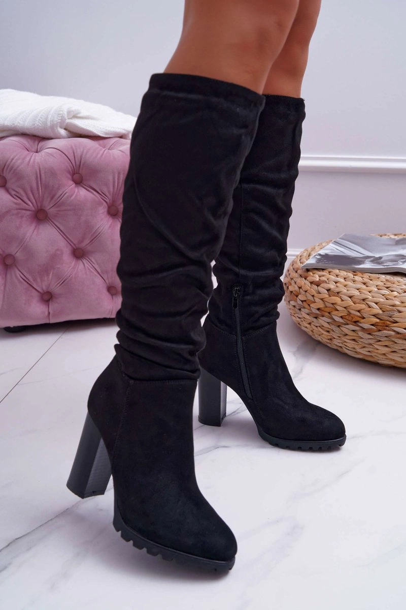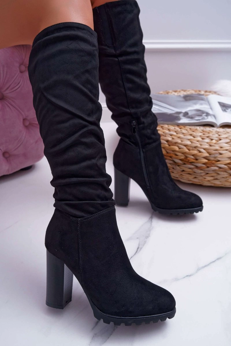 Kozaki Damskie Na Słupku Zamszowe Czarne Marion