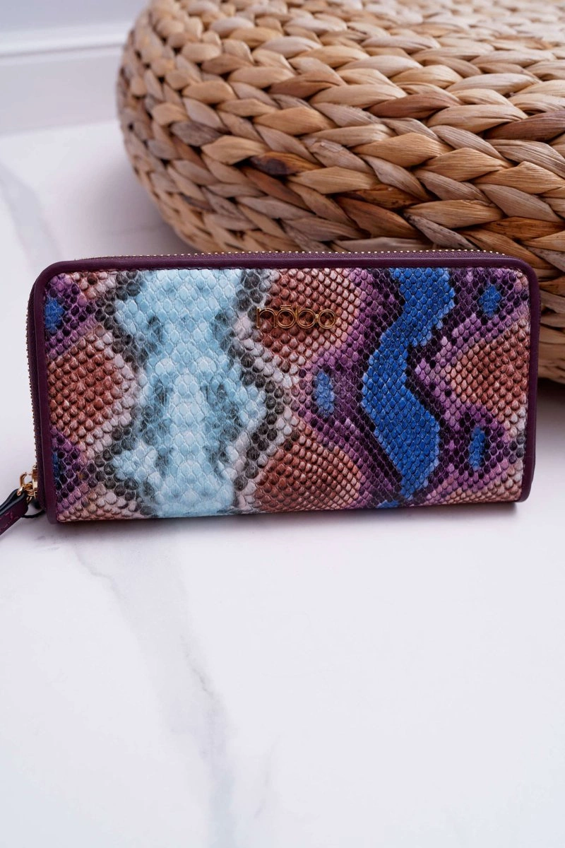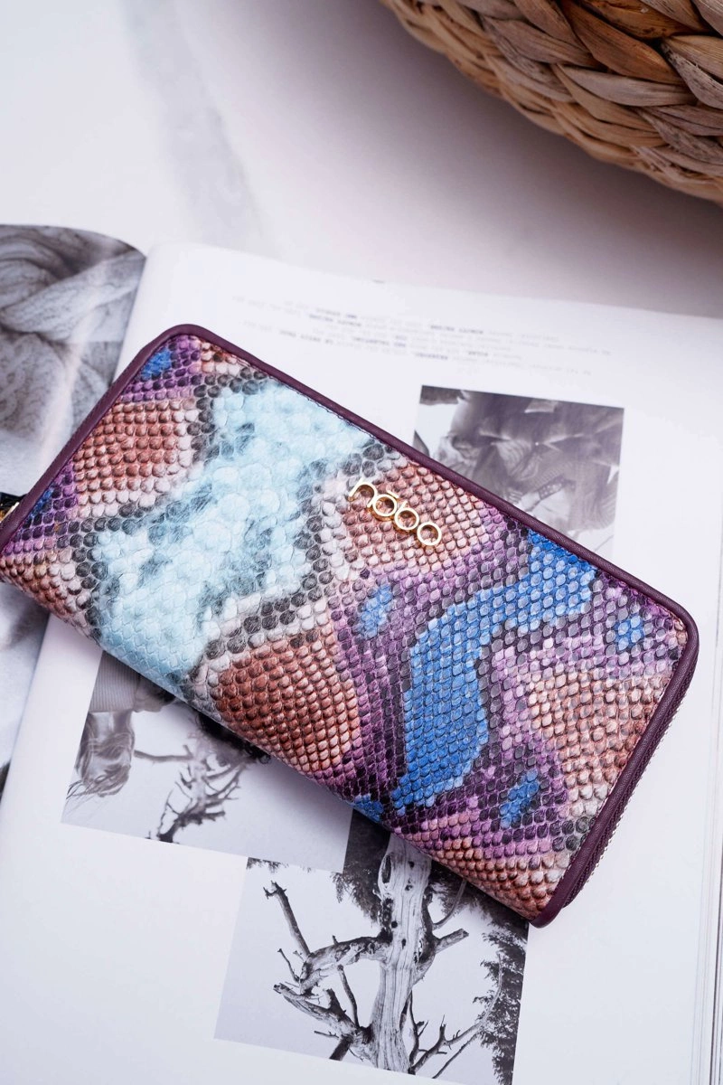 Elegancki damski portfel renomowanej marki NOBO. Klasyczny wężowy wzór wykonany ze skóry ekologicznej. Portfel zapinany na suwak. Wewnątrz znajduje się miejsce na 8 kart bądź innych dokumentów oraz cztery komory z czego jedna zapinana jest na suwak. Portfel zapakowany jest w eleganckie czarne pudełko z logiem marki.