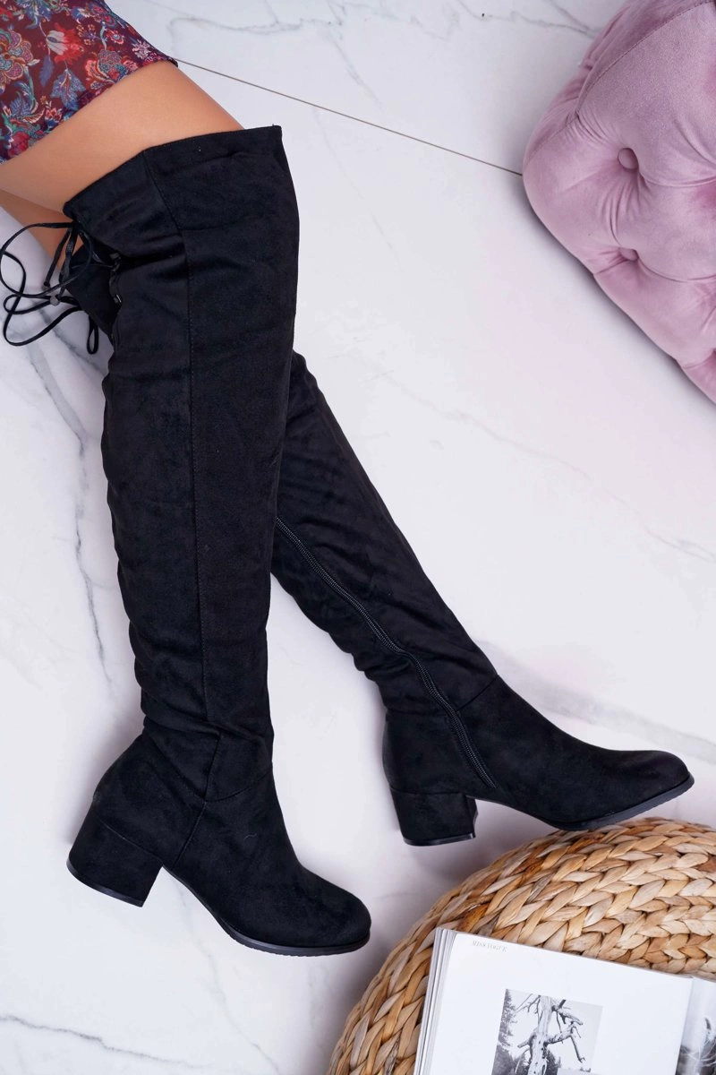 Czarne Damskie Kozaki Ocieplane Zamszowe Barski 98-7