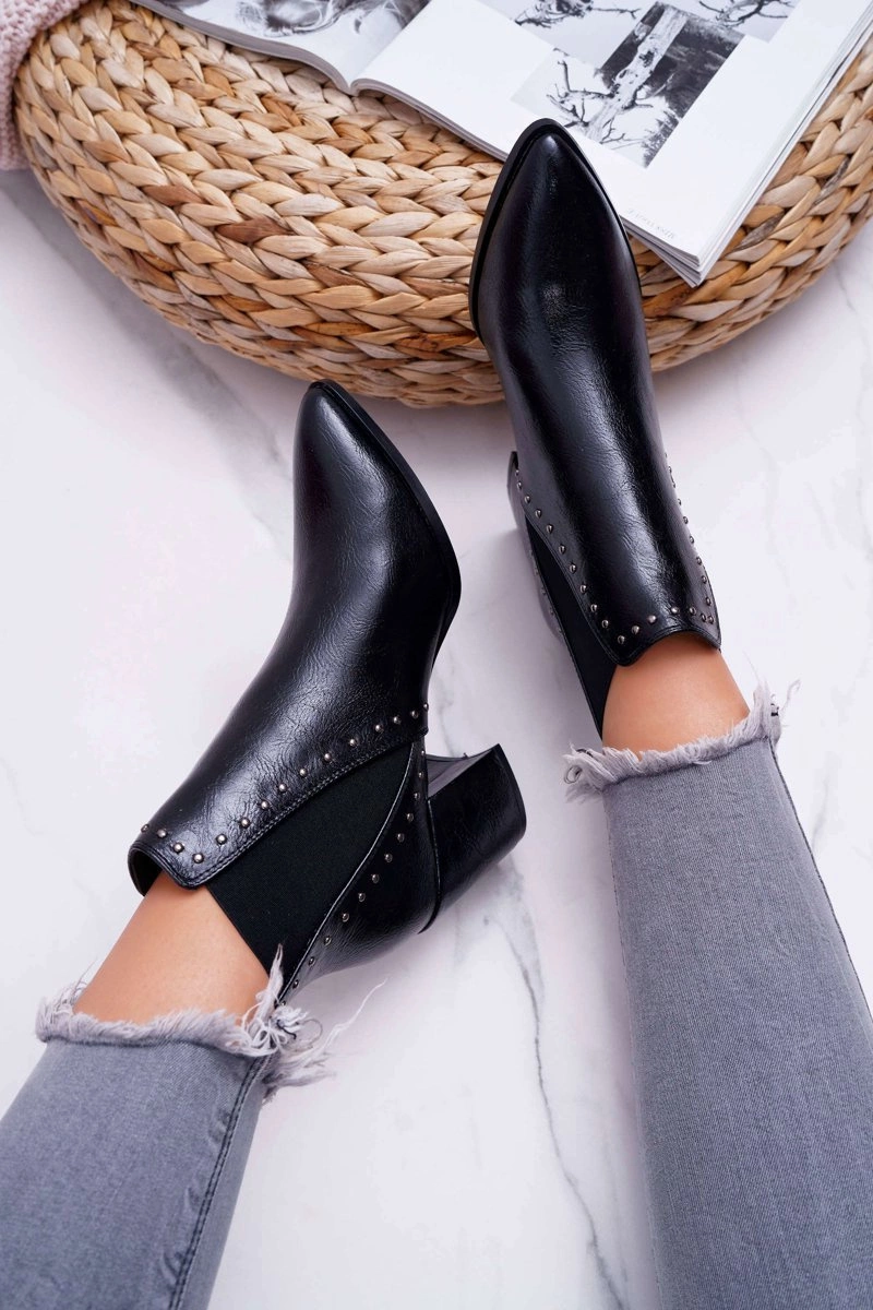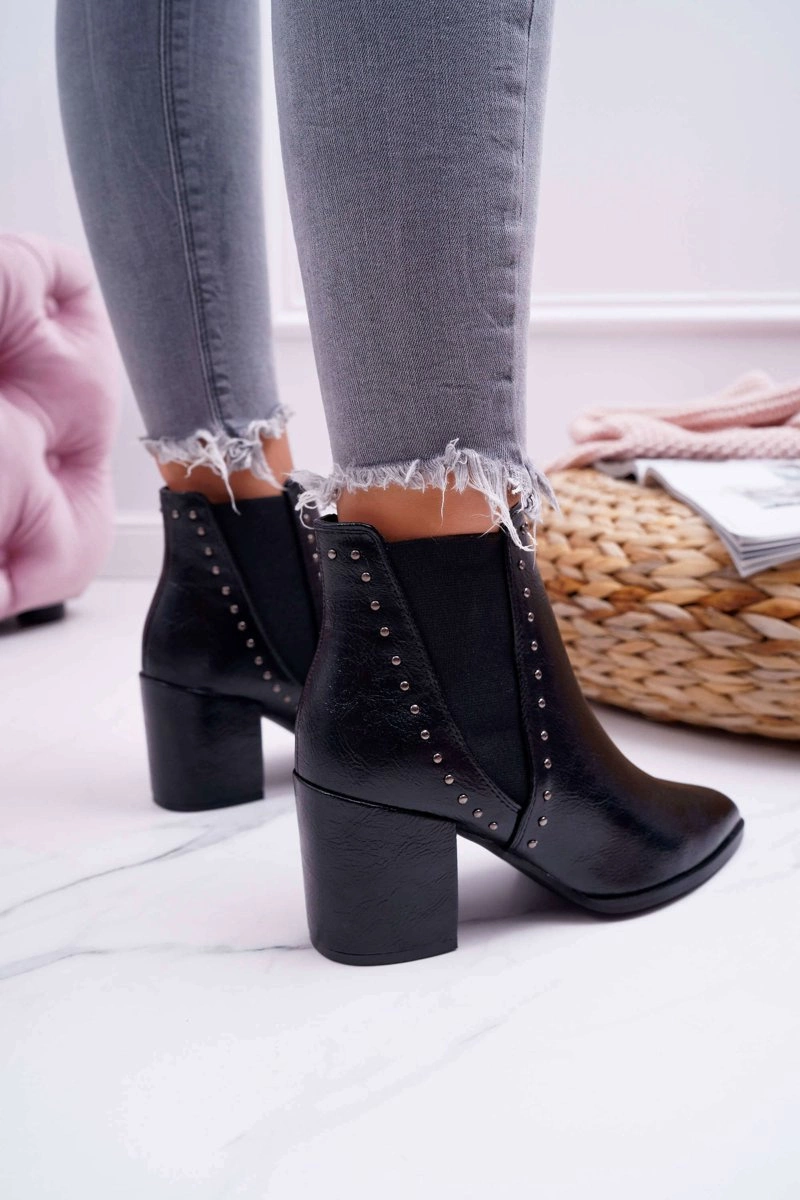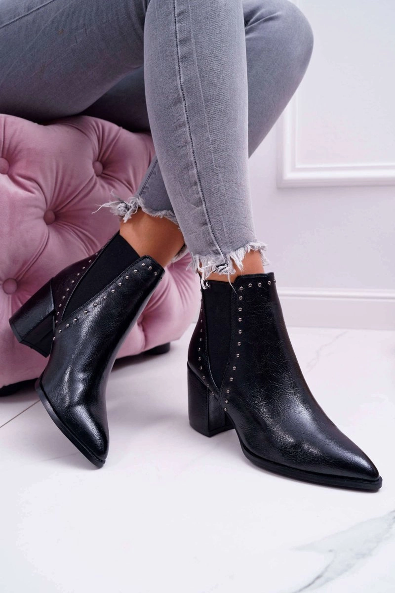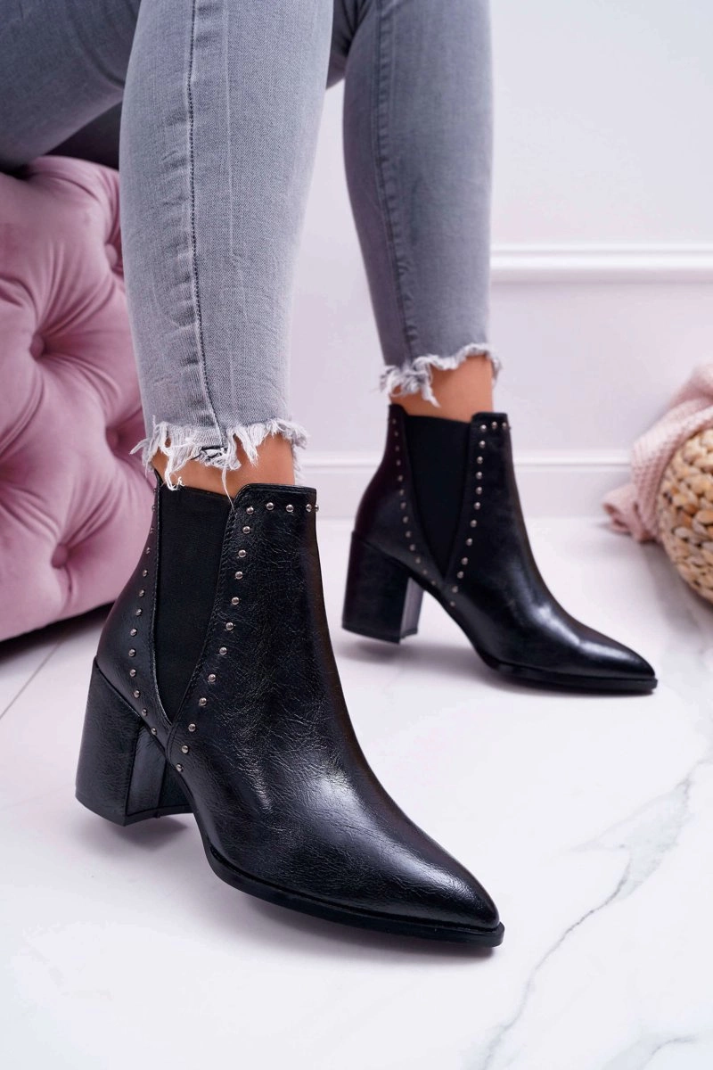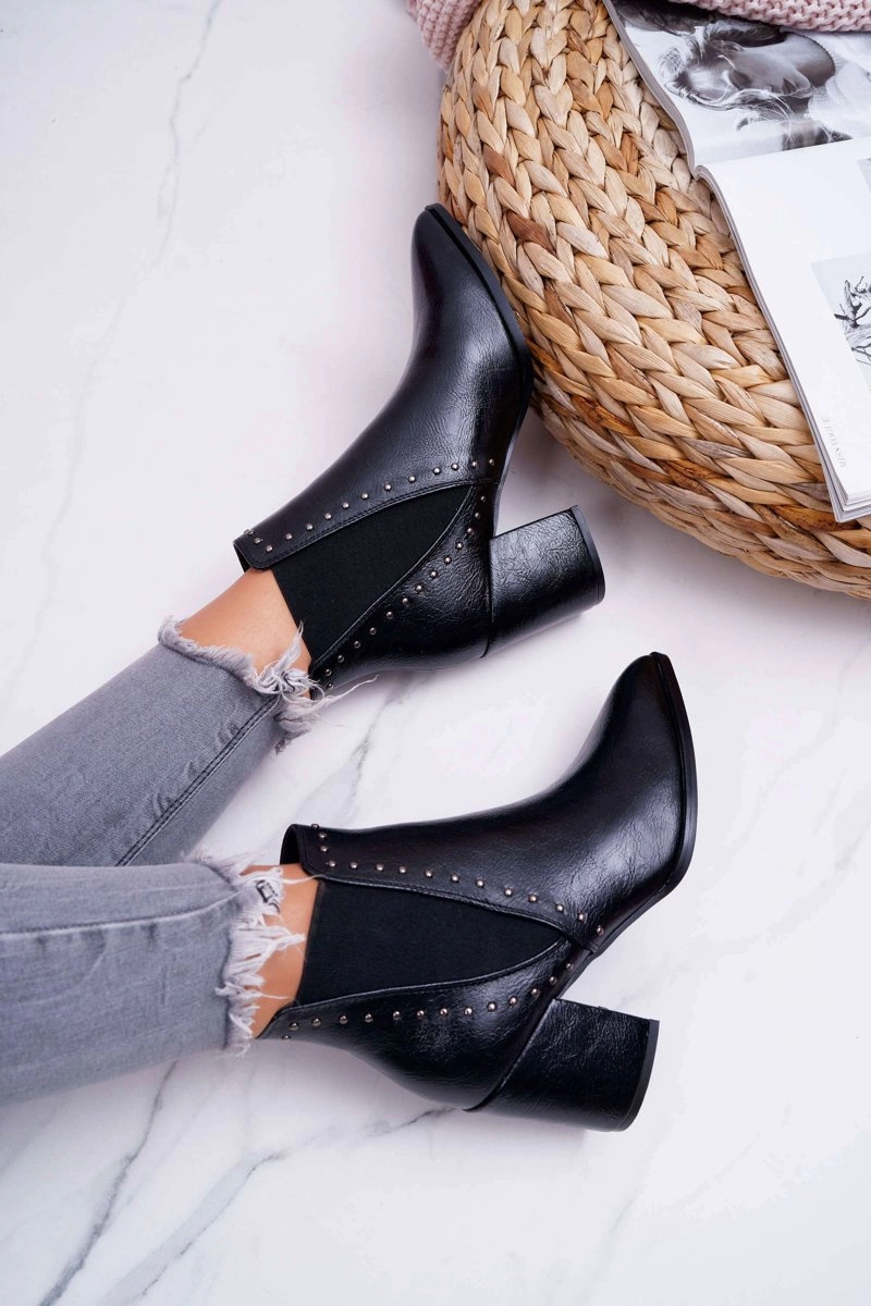 Botki Damskie Na Obcasie Z Gumkami Czarne Trini