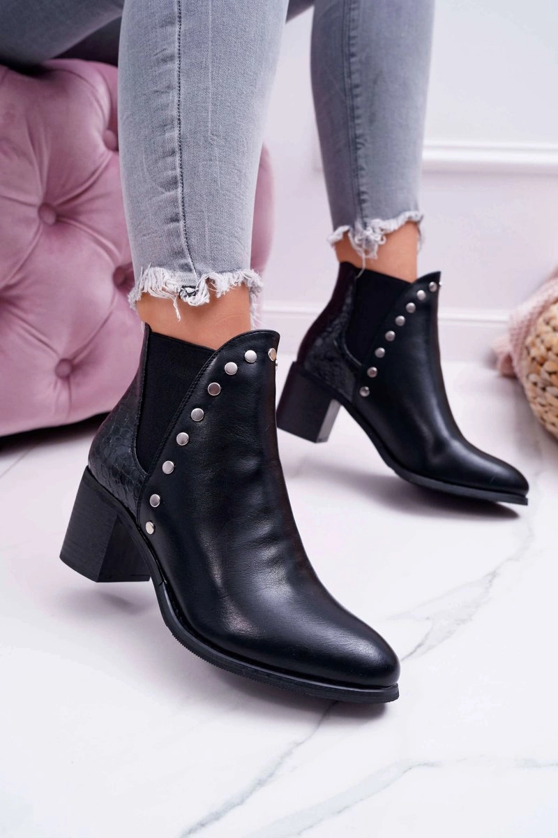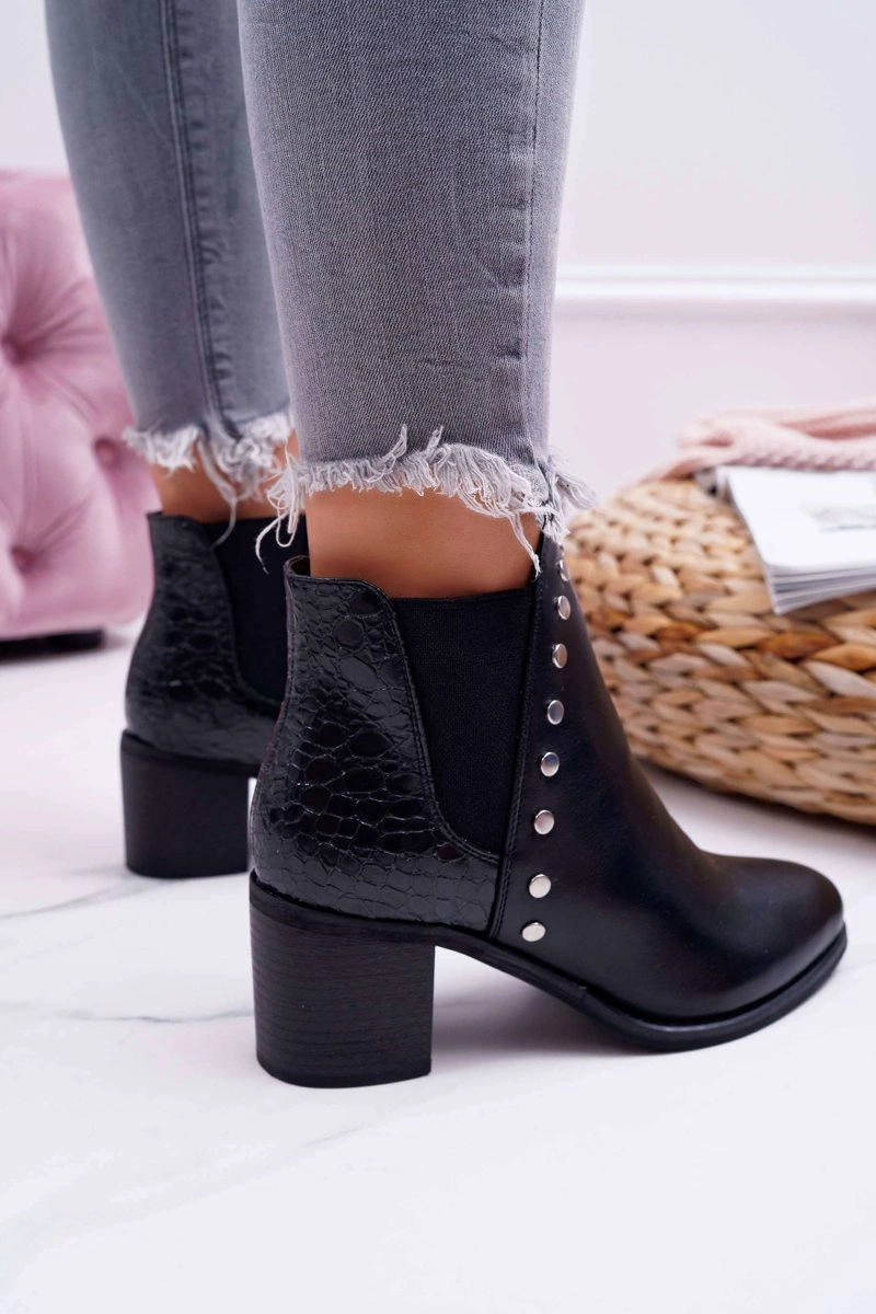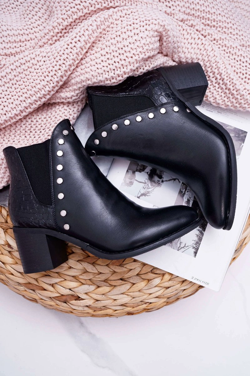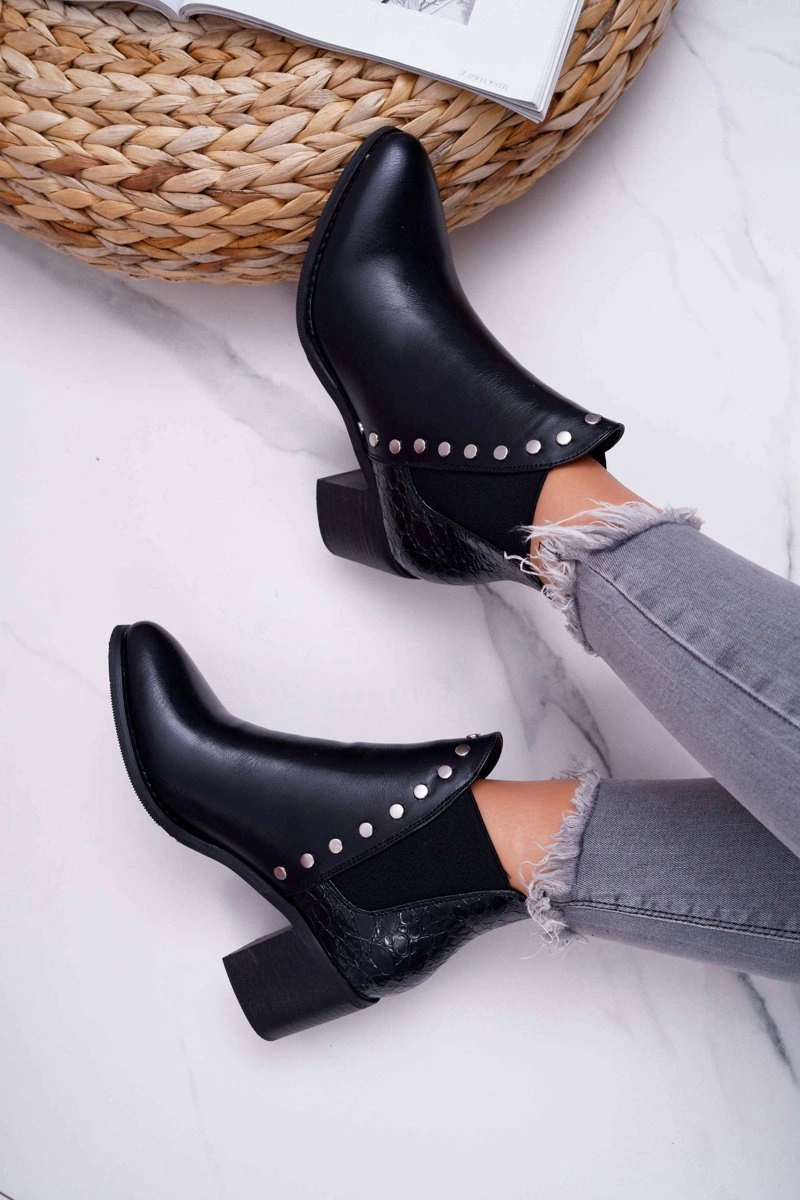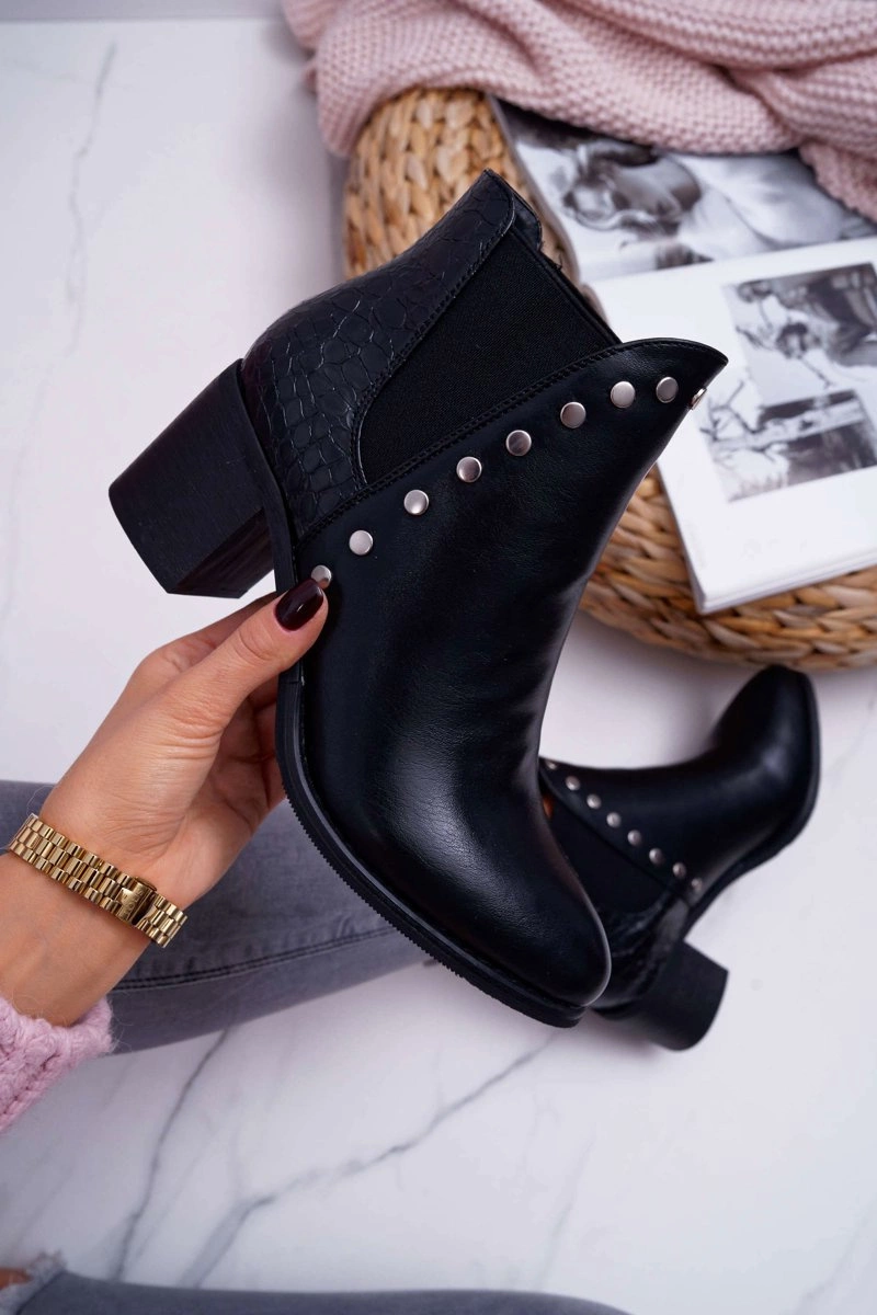 Botki Damskie Na Obcasie Z Gumkami Czarne Vista