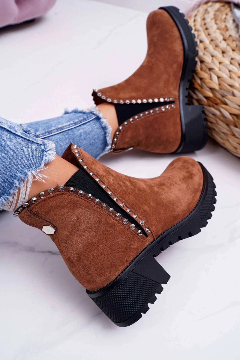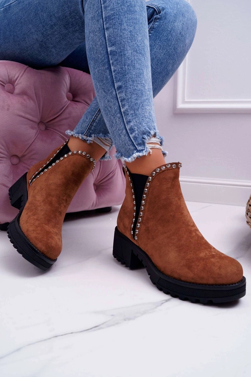 Damskie Botki Sztyblety Z Cyrkoniami Camel Sissy