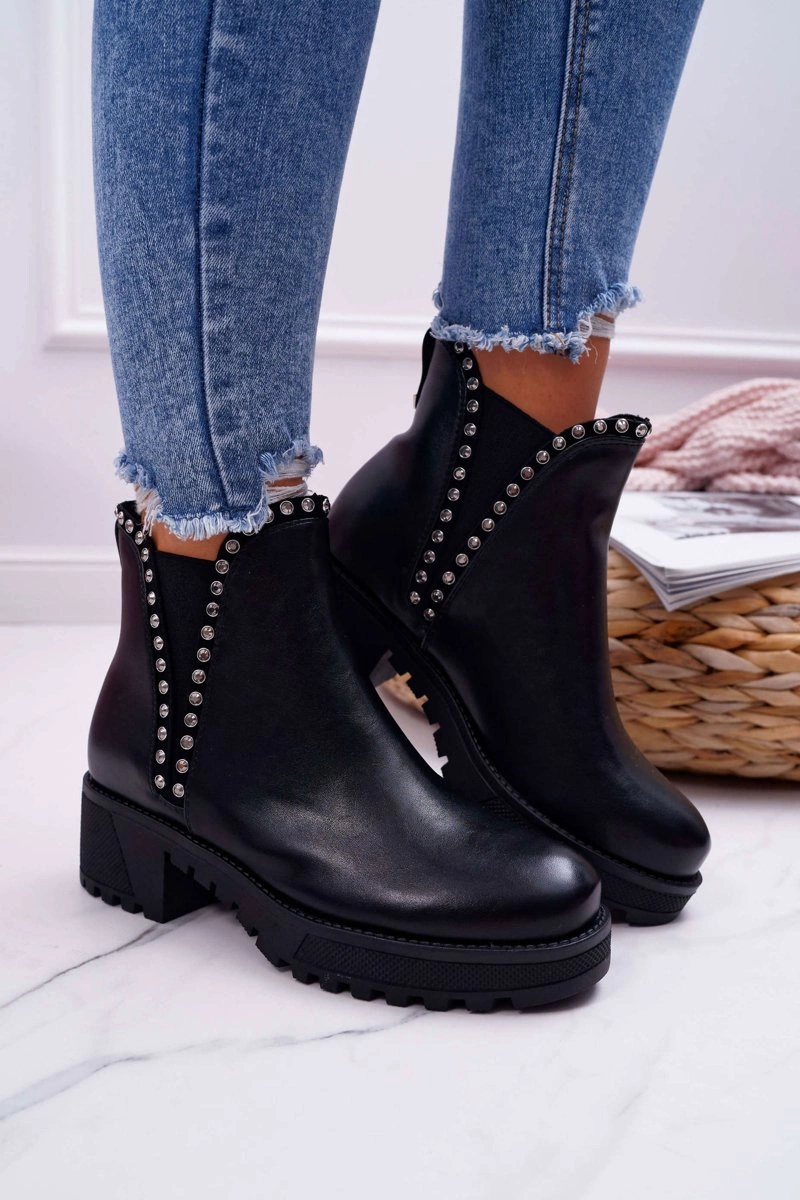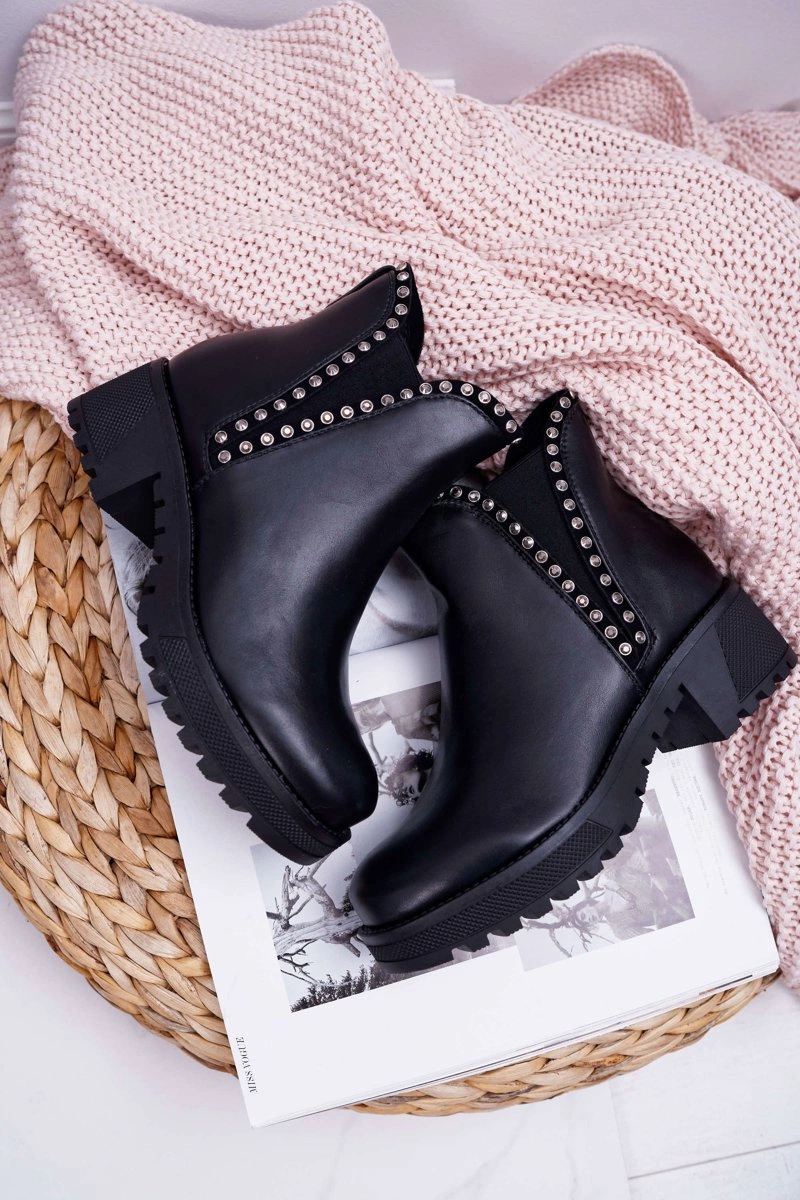 Damskie Botki Sztyblety Z Cyrkoniami Czarne Sissy