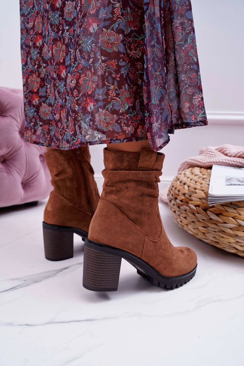 Botki Damskie Na Słupku Zamsz Camel Celma
