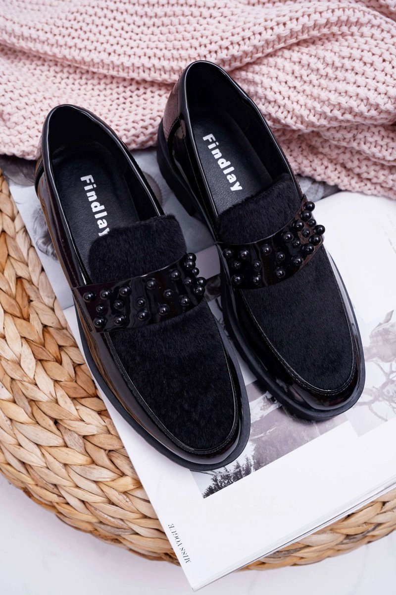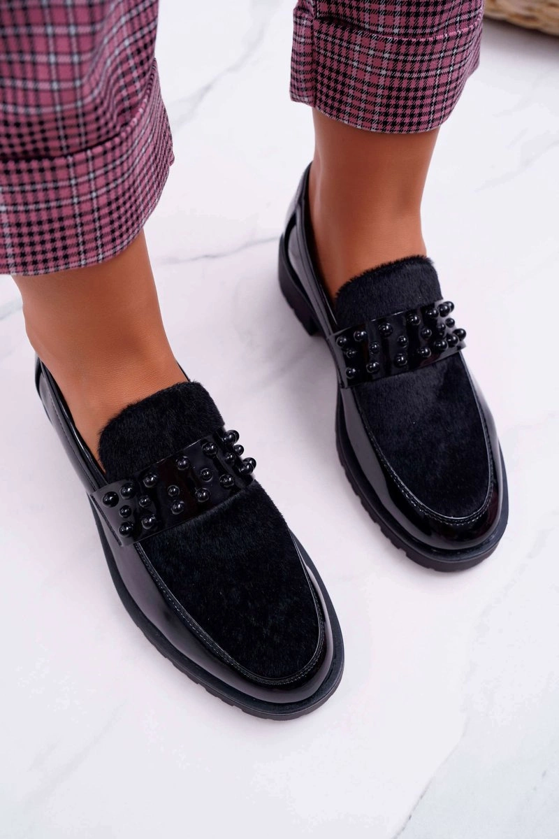Damskie Półbuty Wsuwane Lakierowane Czarne Delicious