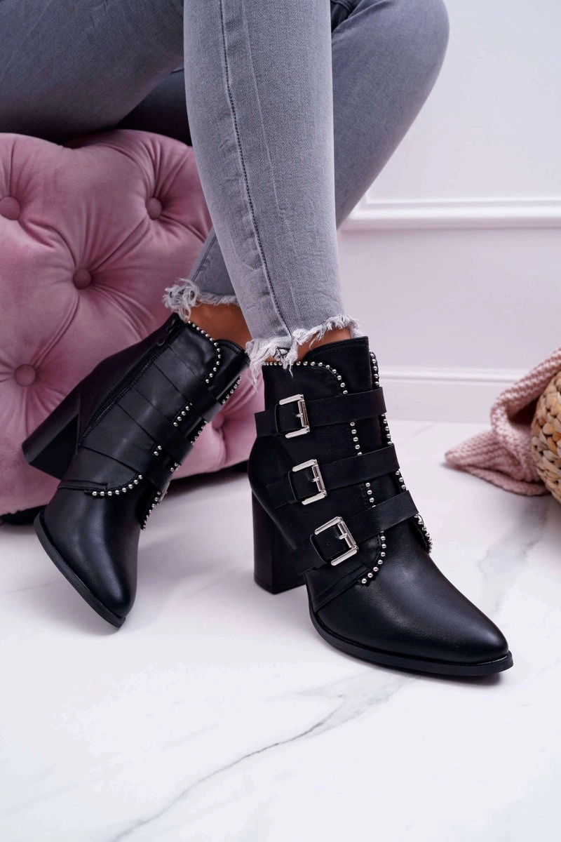 Botki Damskie Na Słupku Klamry Czarne Finbas