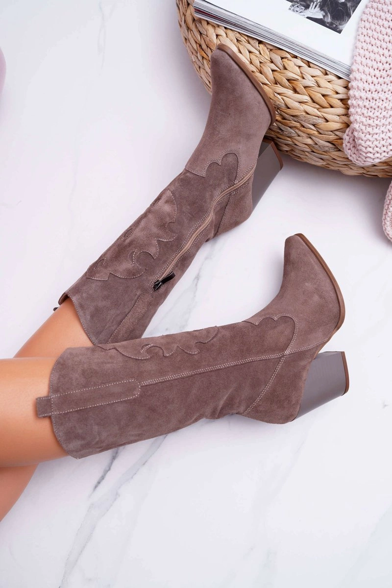 Kozaki Damskie Na Słupku Kowbojki Cappuccino Brunt
