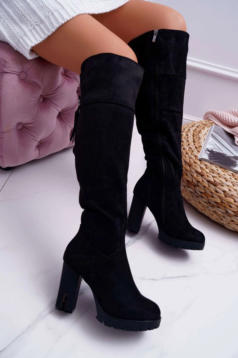 Kozaki Damskie Na Słupku Zamszowe Ocieplane Velkor