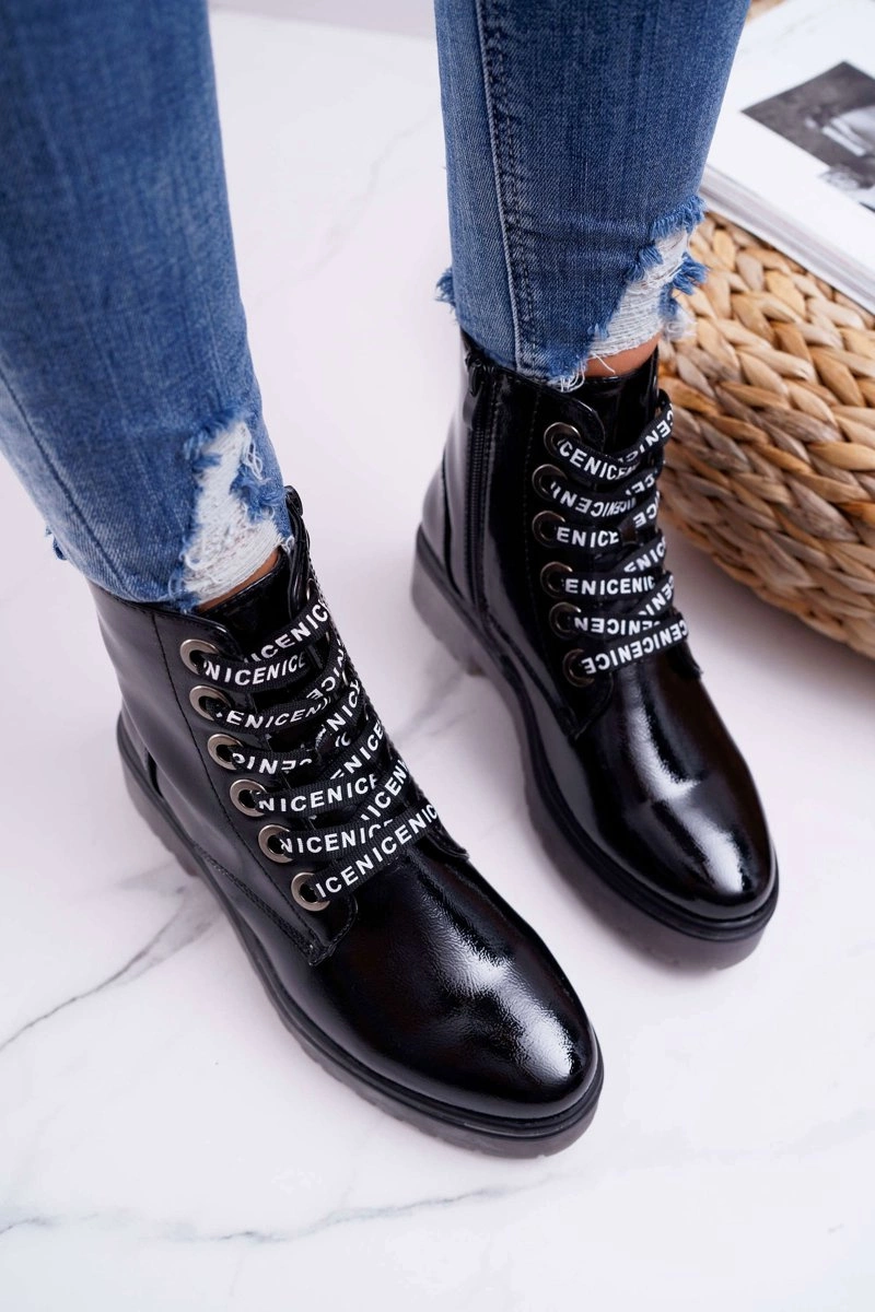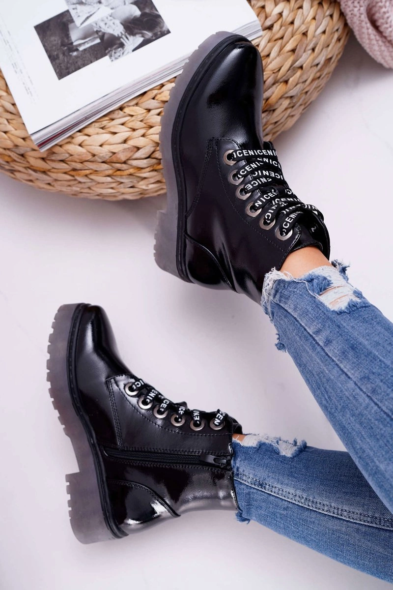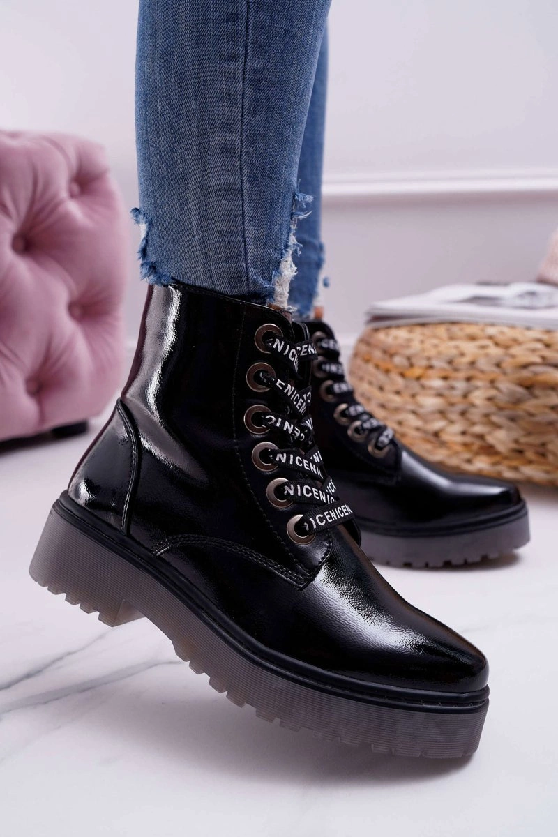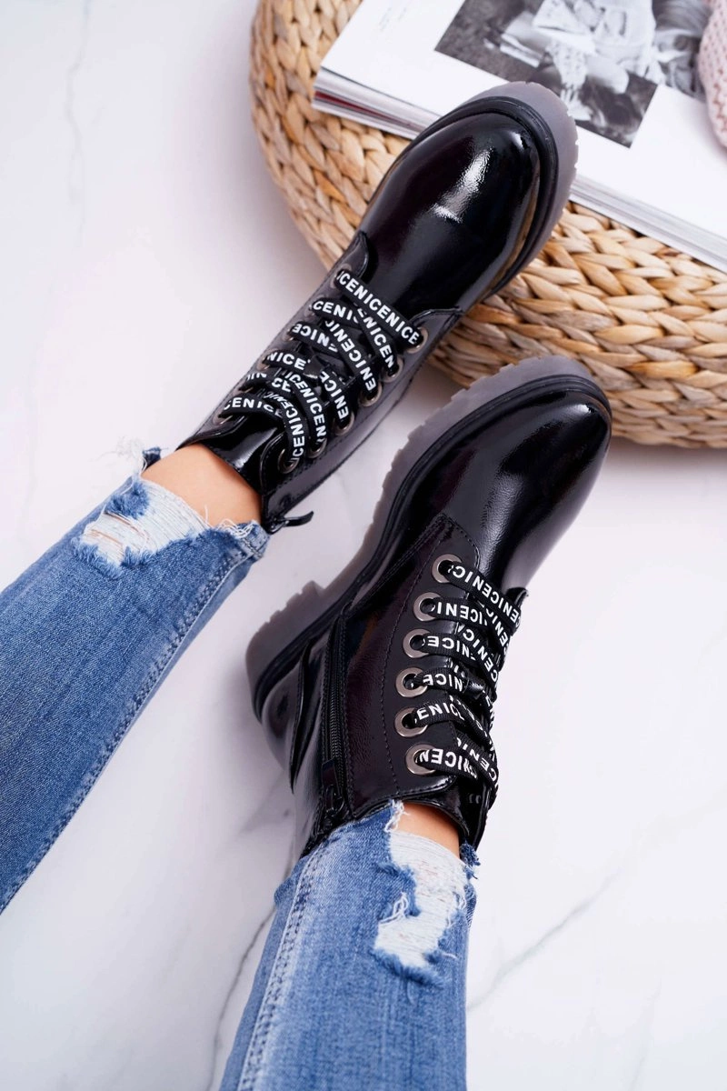 Botki Damskie Płaski Obcas Glany Lakierowane Czarne Sergio Leone TR726