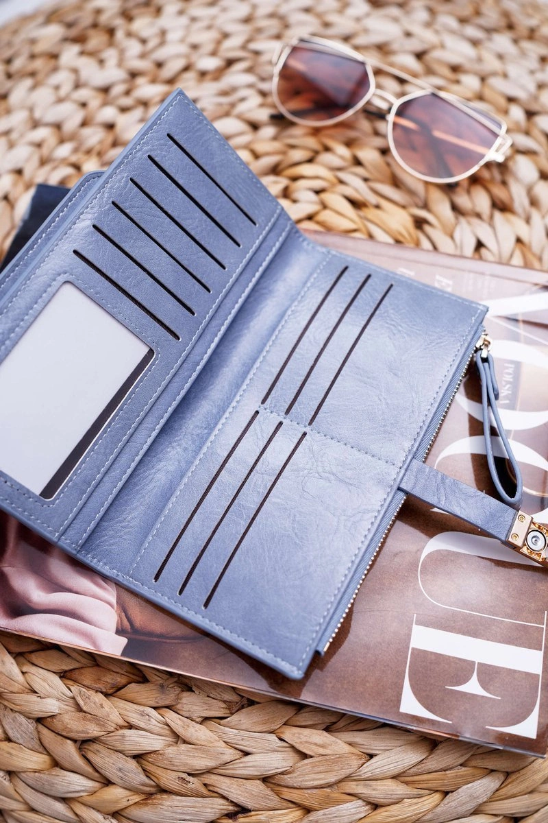 Elegancki damski portfel. Klasyczny wzór wykonany ze skóry ekologicznej. Portfel posiada dwie główne kieszenie z czego jedna zapinana jest na suwak a druga na magnes. Wewnątrz znajduje się miejsce na 22 karty bądź inne dokumenty oraz dwie kieszonki na fotografię. Druga komora idealnie sprawdzi się do przechowywania drobnych pieniędzy bądź telefonu.