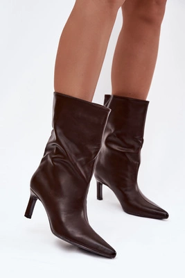 Wsuwane Botki Damskie Na Szpilce Z Eko Skóry Czekoladowe Norell