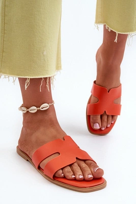 Damskie Płaskie Klapki Z Wycięciami Pomarańczowe Fiviama