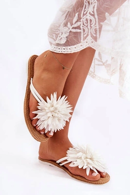 +4Damskie Klapki Japonki Z Materiałową Ozdobą Białe Eviana