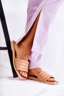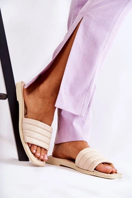 Damskie Skórzane Klapki Z Pikowaniem Beżowe Raula