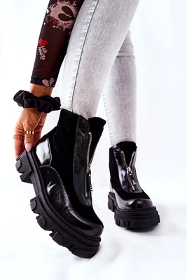 Damskie Skórzane Welurowe Botki Trzewiki Nicole Czarne 2581/028