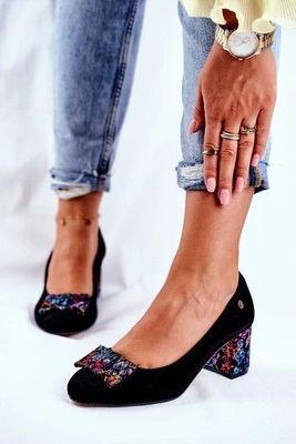Czółenka Damskie Maciejka Zamszowe Czarne 3356A-62/00-1