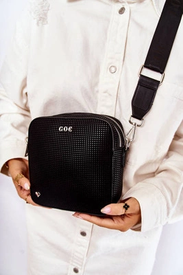 Skórzana Torebka Listonoszka Z Sercem GOE ZNJ015 Czarna