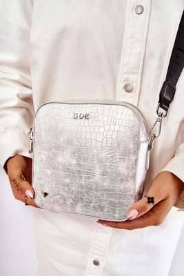 Skórzana Torebka Listonoszka Z Sercem GOE ZNJ014 Srebrna