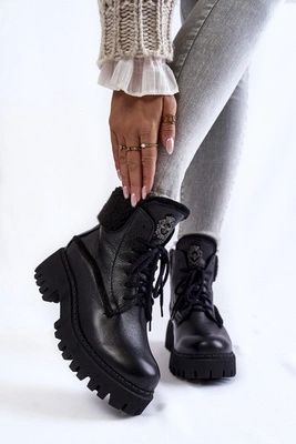 Ocieplane Botki Workery Z Ozdobą Laura Messi 2500 Czarne