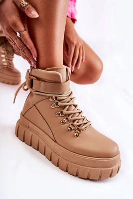 Modne Damskie Botki Na Platformie Z Paskiem Beżowe La Blanca